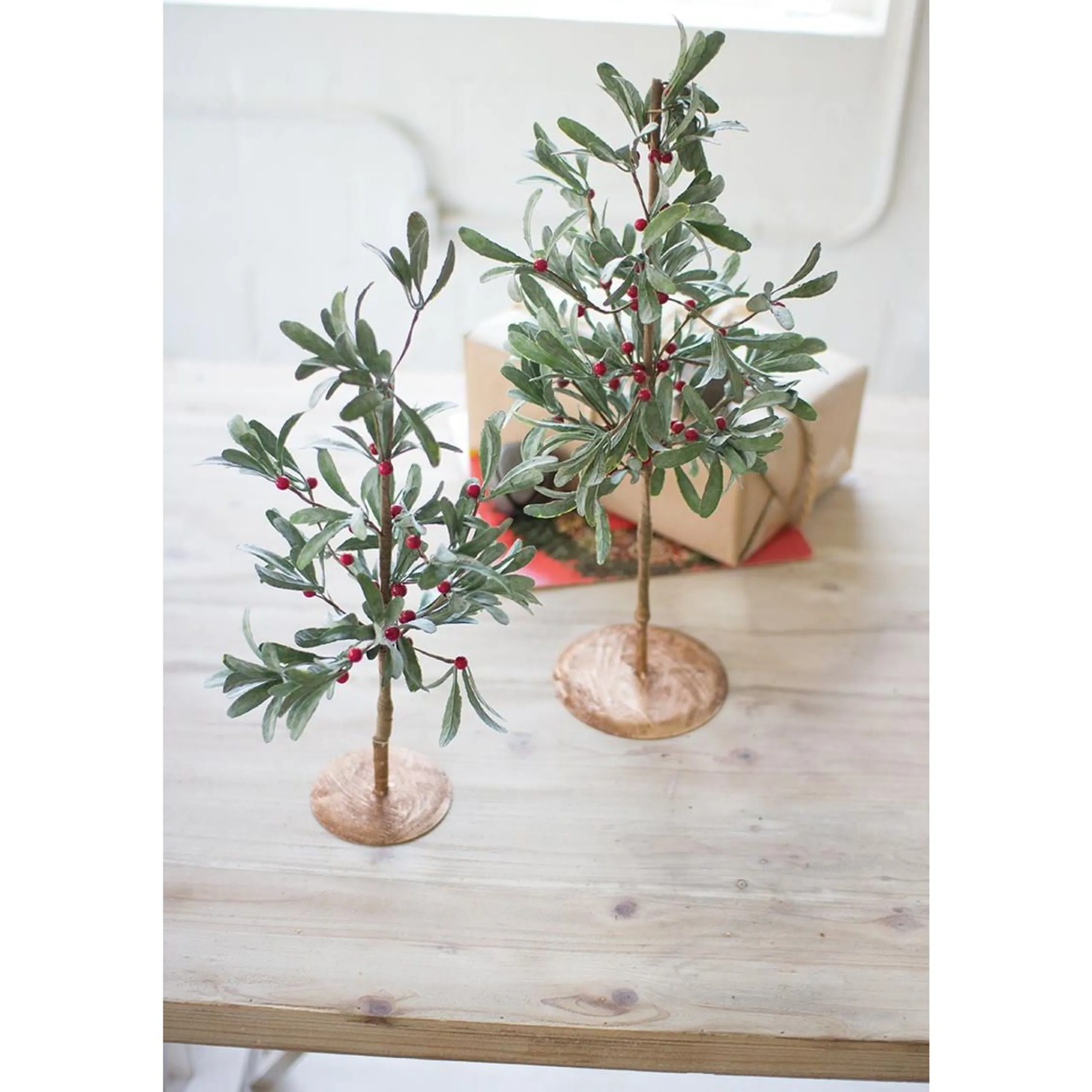 Contemporary Home Living Twig Trees>Set Of 2 Green, Brown, And Red Artificial Christmas Mistletoe Trees