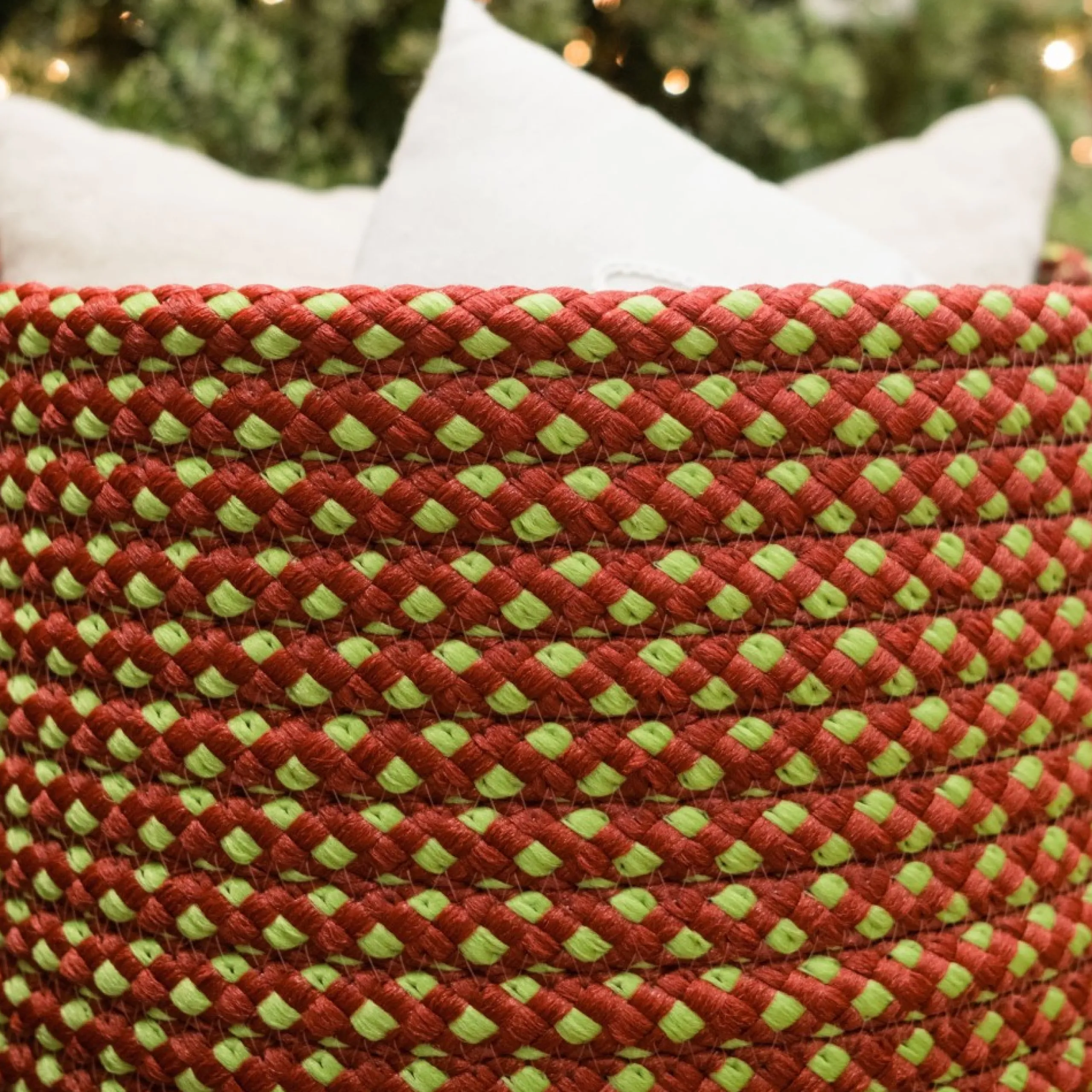 Decoration Storage*Colonial Mills 20″ Red And Green Chevron Round Braided Holiday Jumbo Basket
