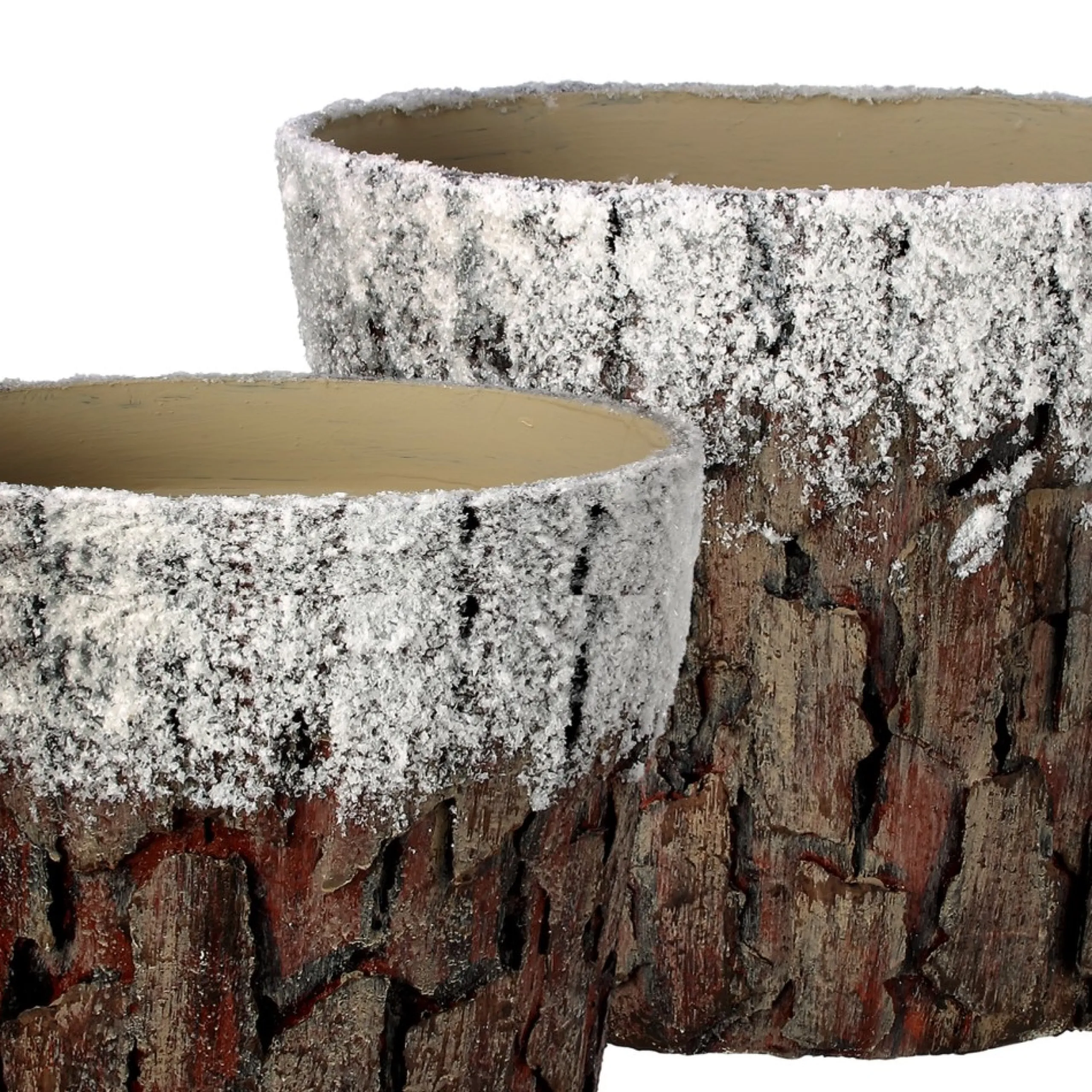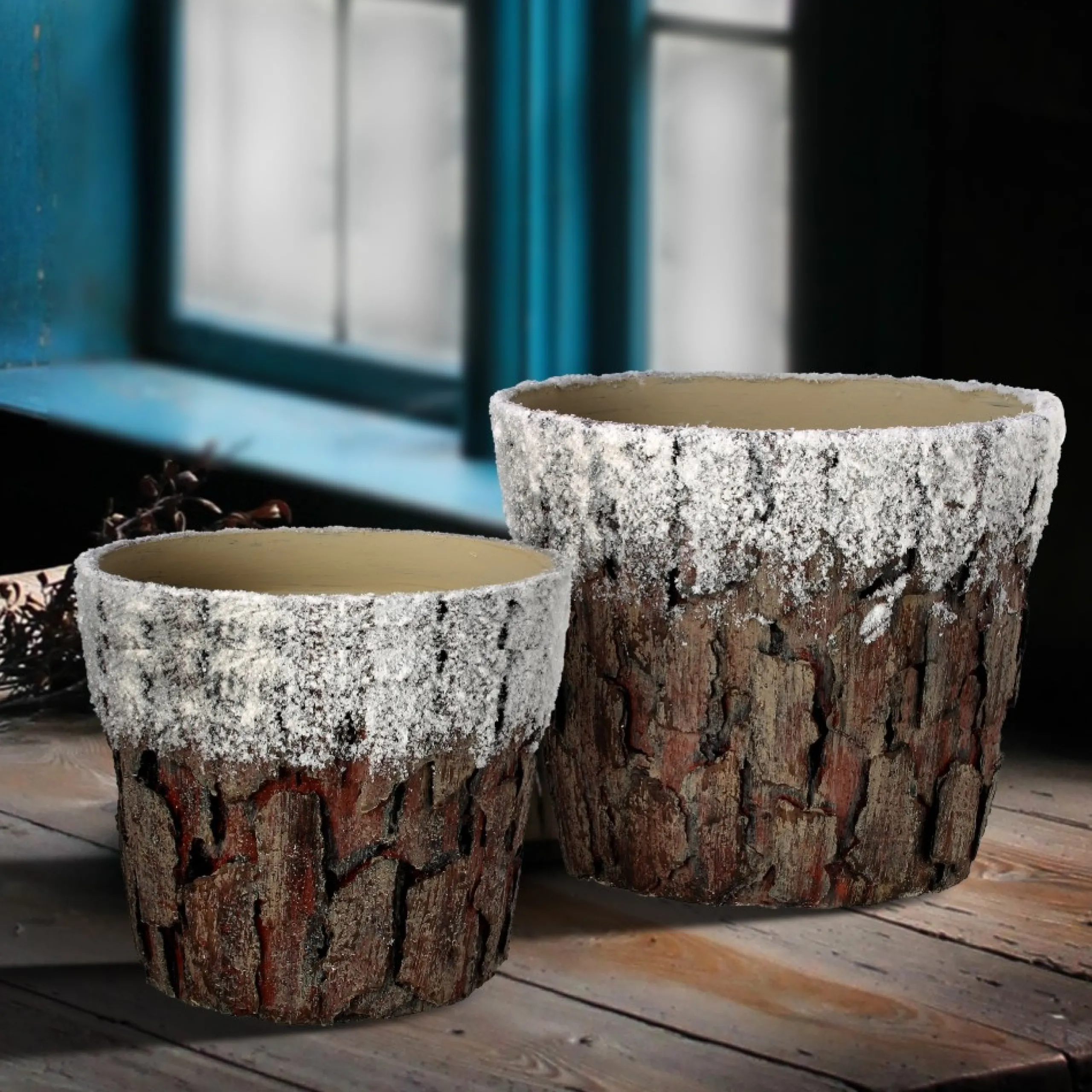 Elevate Your Home Decor This Christmas With Tis Set Of 2 Bark Pots. Featuring A Frosted Appearance And Crafted In Elegant Brown And White Hues, These Pots Add A Touch Of Rustic Beauty To Any Space. Whether Showcasing Holiday Plants, Displaying Christmas Knick Knacks, Or Simply Making A Statement, This Set Of Two Bark Pots Is A Versatile Addition To Your Festive Decorations.