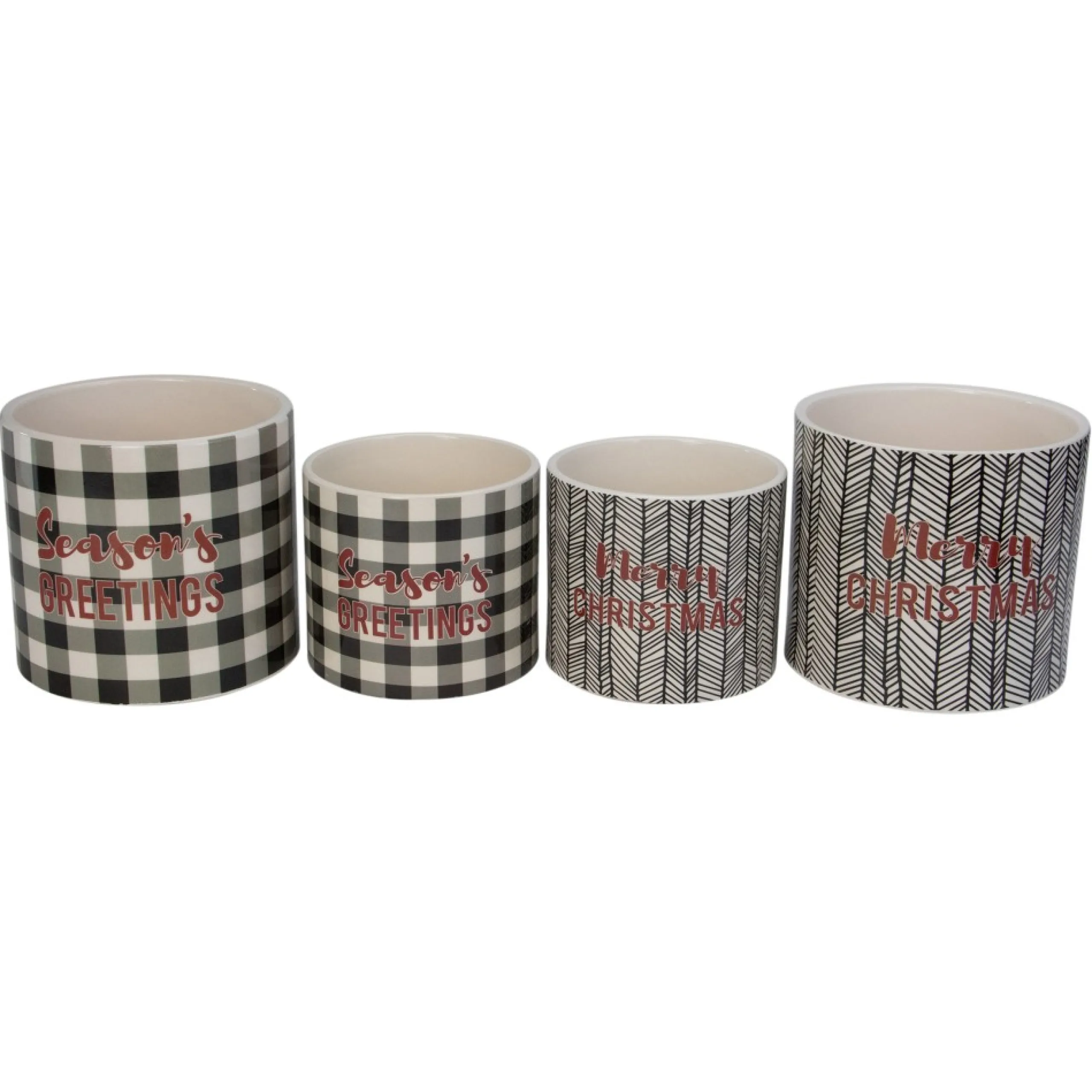 Decoration Storage*Melrose Set Of 4 White And Black Holiday Slogan Printed Christmas Pots 6″