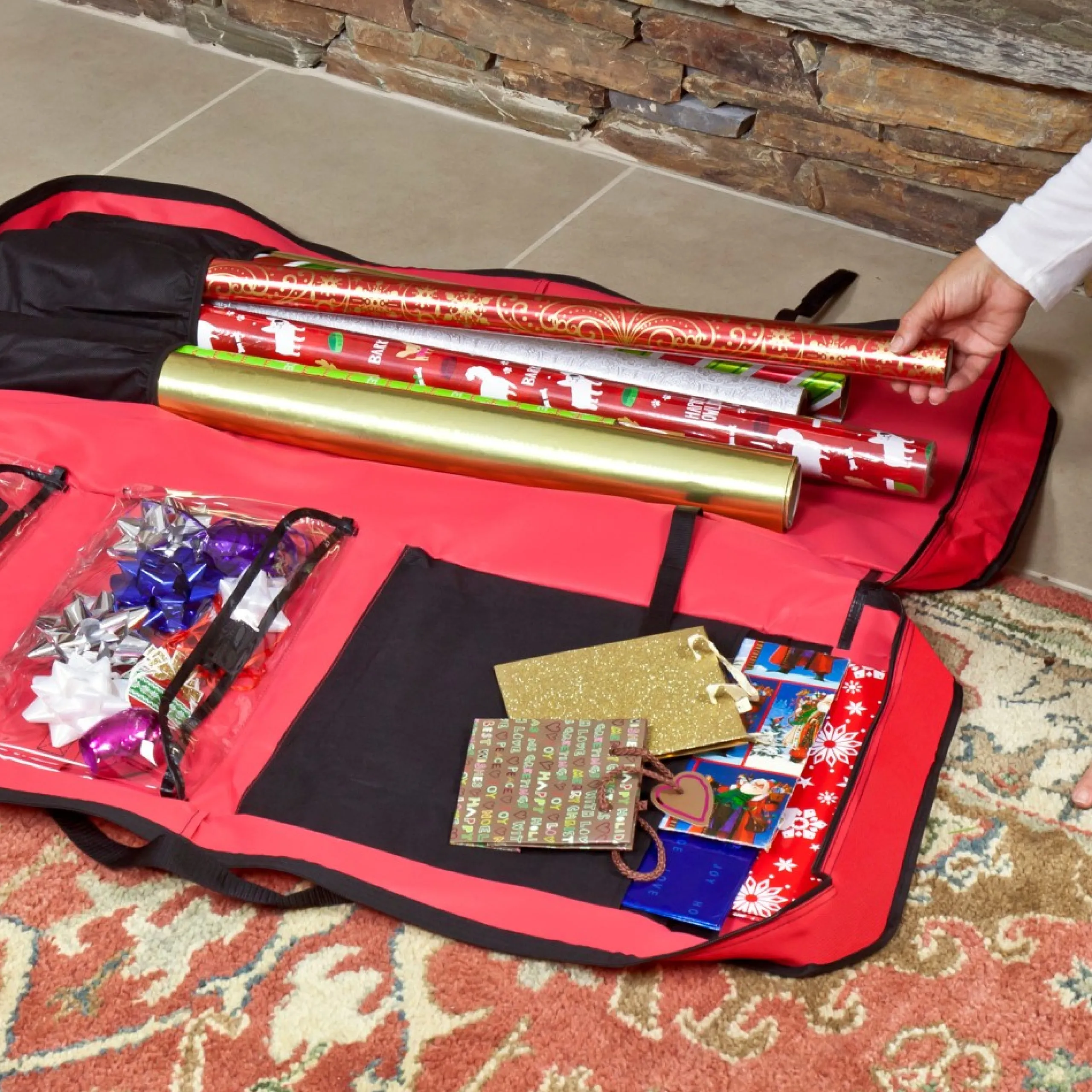 Simplify Your Christmas Storage And Save Time With Our Zip-Up Wrapping Paper Christmas Storage Organizer Bag! Measuring 39 Inches In Size, This Storage Bag Is Designed To Hold Multiple Rolls Of Wrapping Paper, Gift Bags, And Other Holiday Accessories. Made With Durable Materials And Sturdy Zippers, It Protects Your Wrapping Paper From Damage And Keeps It Neatly Organized, Making It Easy To Find What You Need. With Its Compact Design, It Can Be Easily Stored In A Closet Or Under The Bed, Freeing Up Space In Your Home. The Bag Features Convenient Handles For Easy Transport. Keep Your Christmas Wrapping Essentials Organized And Tidy With Our Zip-Up Wrapping Paper Christmas Storage Organizer Bag And Enjoy A Hassle-Free Holiday Season!