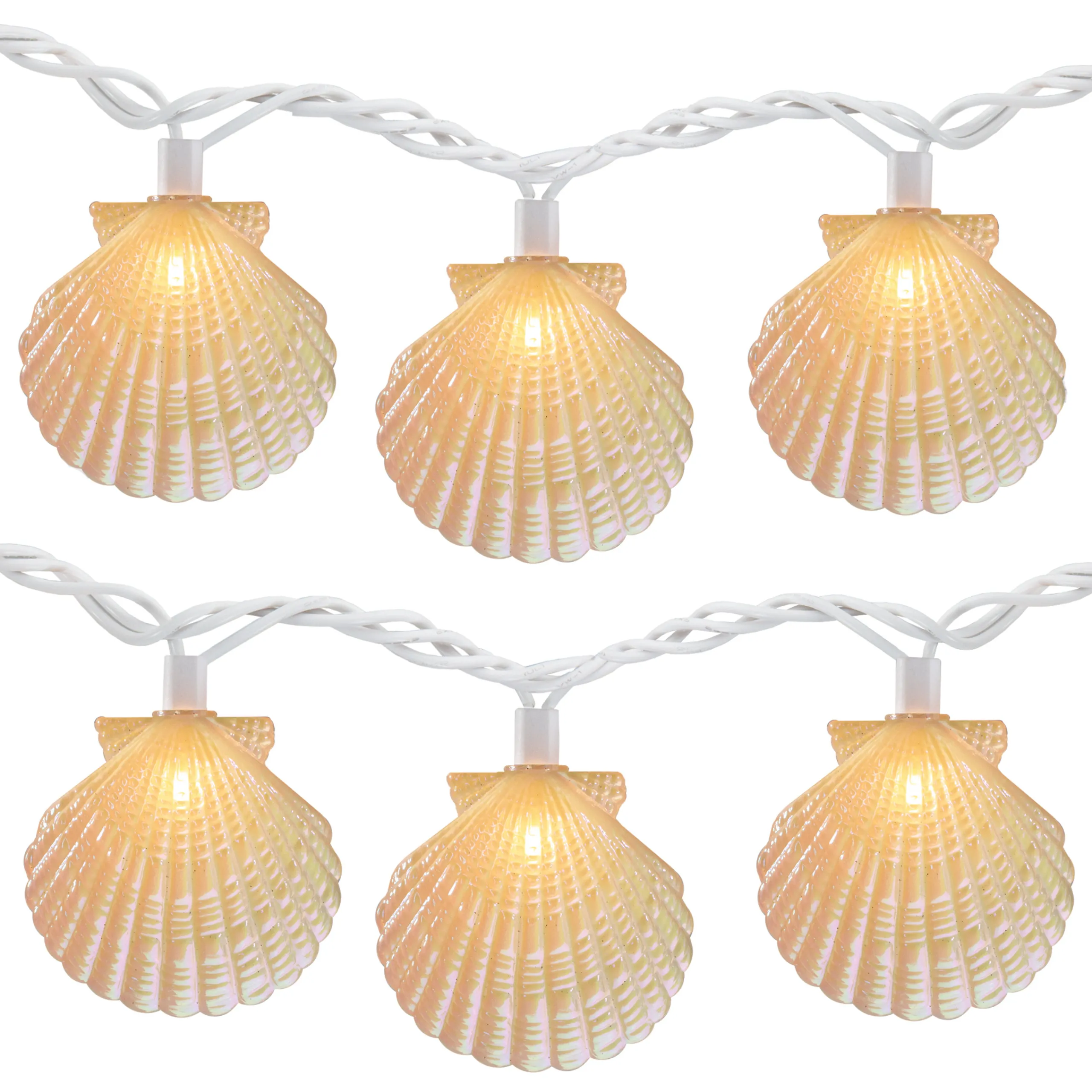 Dennis East 10 Count Iridescent Scalloped Seashell Novelty String Lights, 6.5 Ft White Wire
