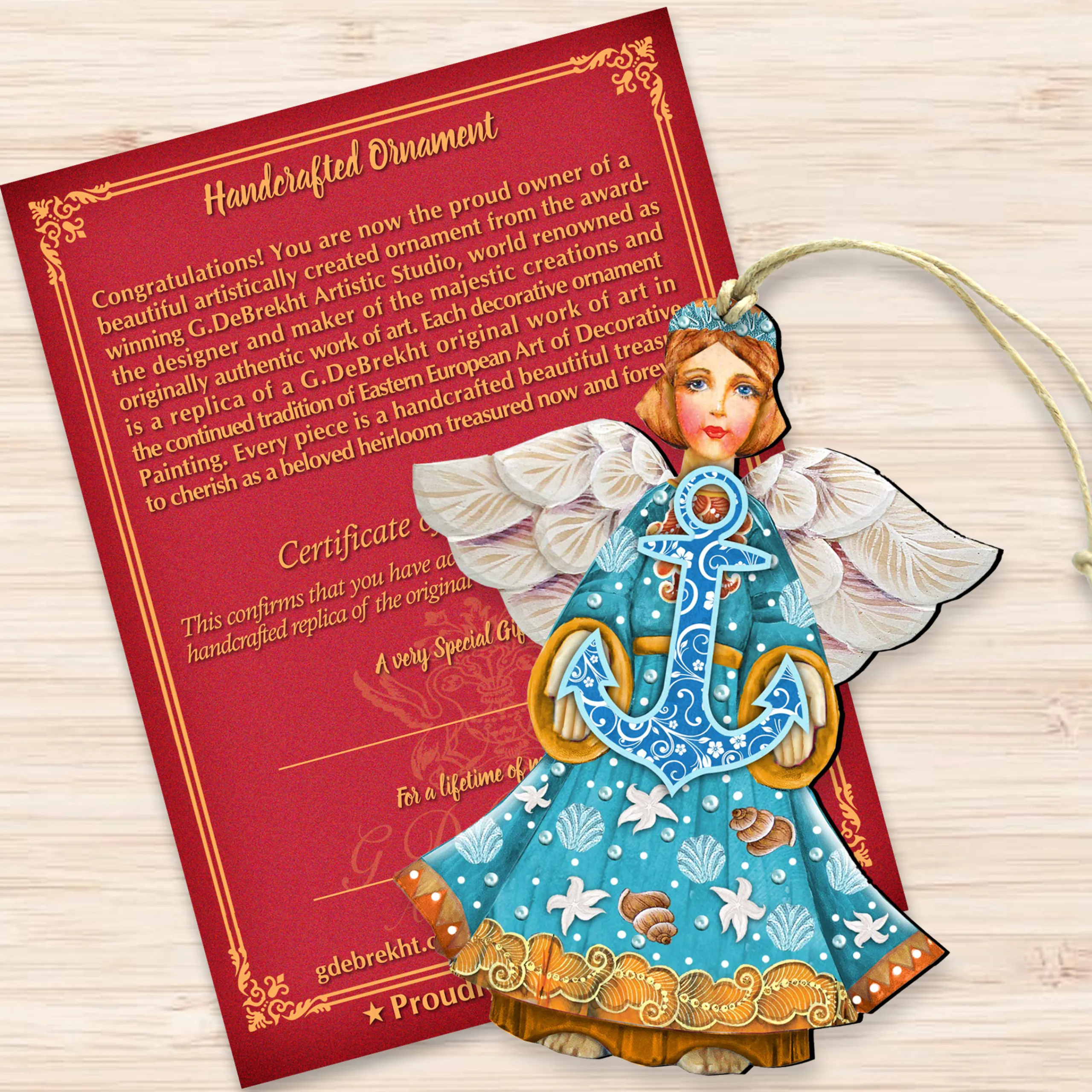 Ornaments Depict An Angel Wearing A Sea Inspired Dress Holding An Anchor