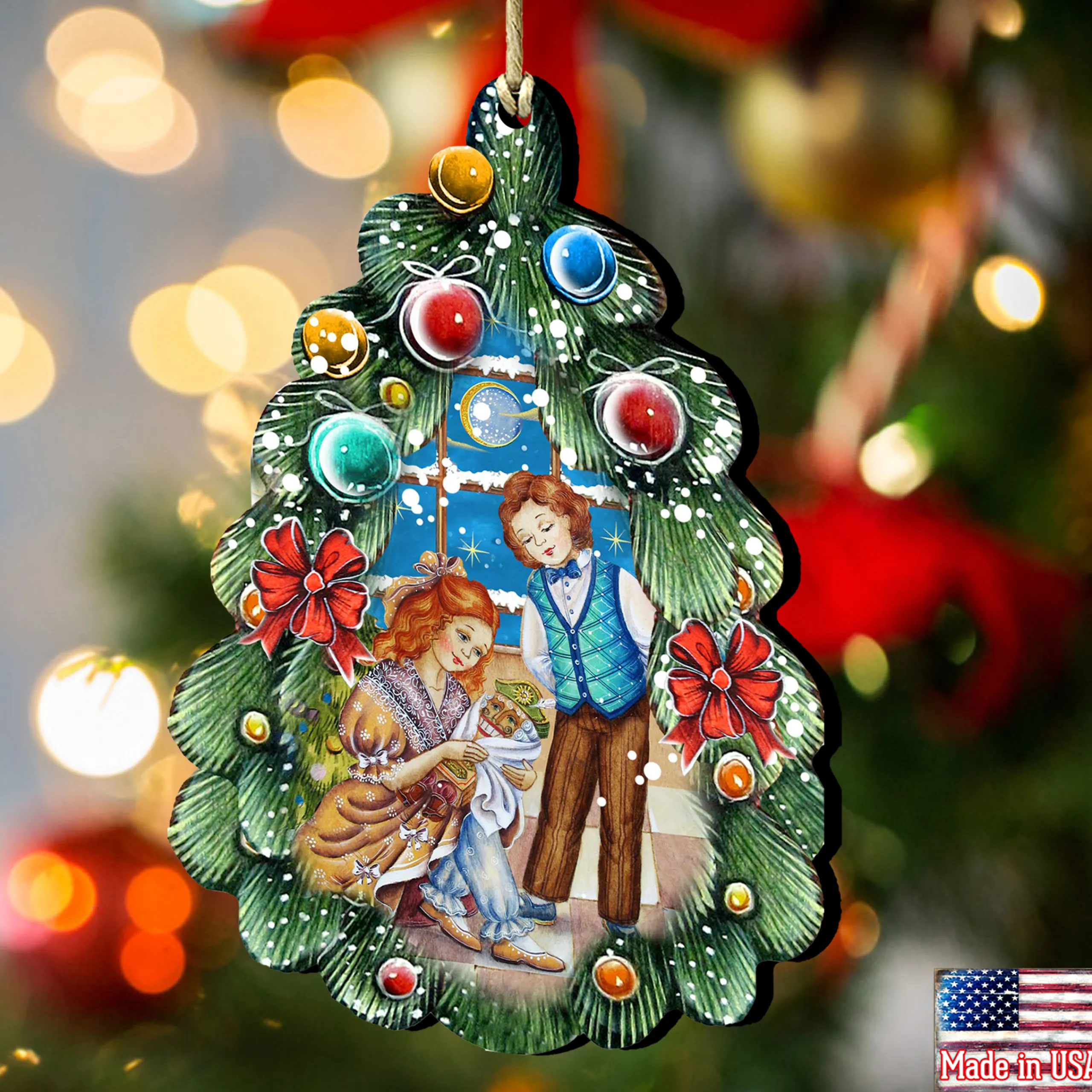 Designocracy Family & Friends>Set Of 2 Family With A Nutcracker Christmas Tree Ornaments 5.5″