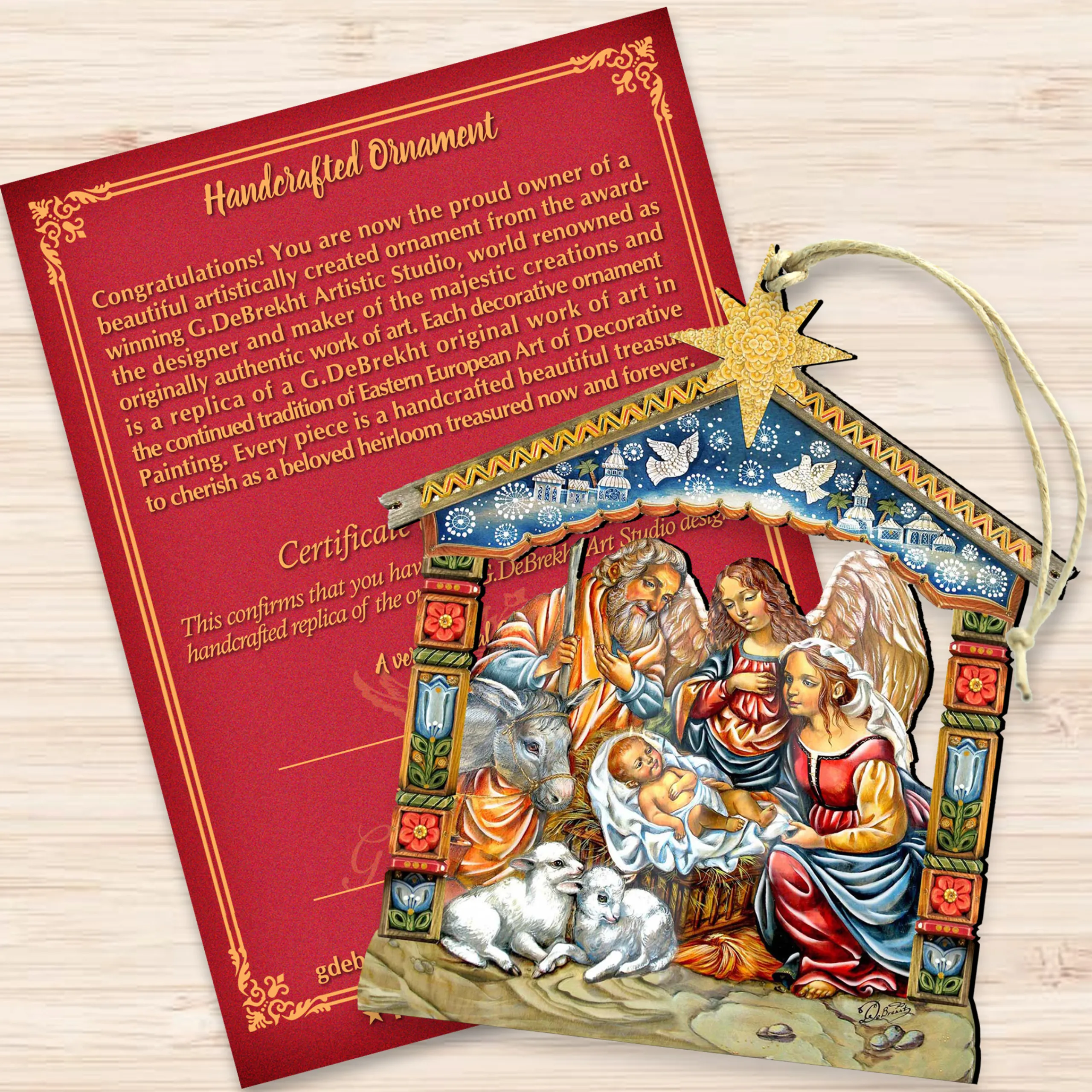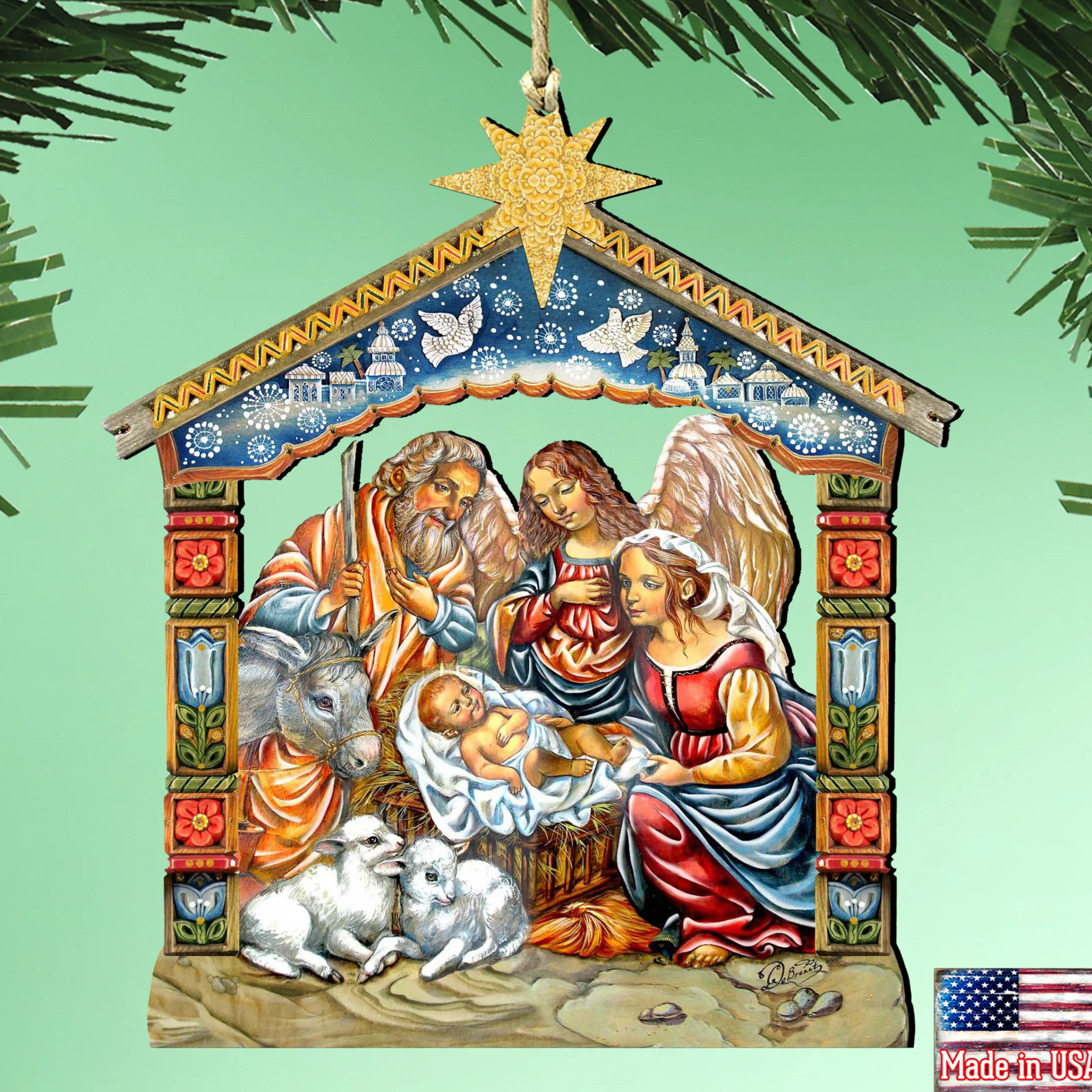Invite The Beauty Of Christmas Into Your Home With This Set Of Charming Ornaments. These Ornaments Depict A Family Celebrating A Miracle Nativity With Their Animals. Each Ornament Was Handcrafted From Birch Wood And Designed By G.Debrekht. These Would Be A Perfect Addition To Your Home Christmas Decoration Or A Great Gift.