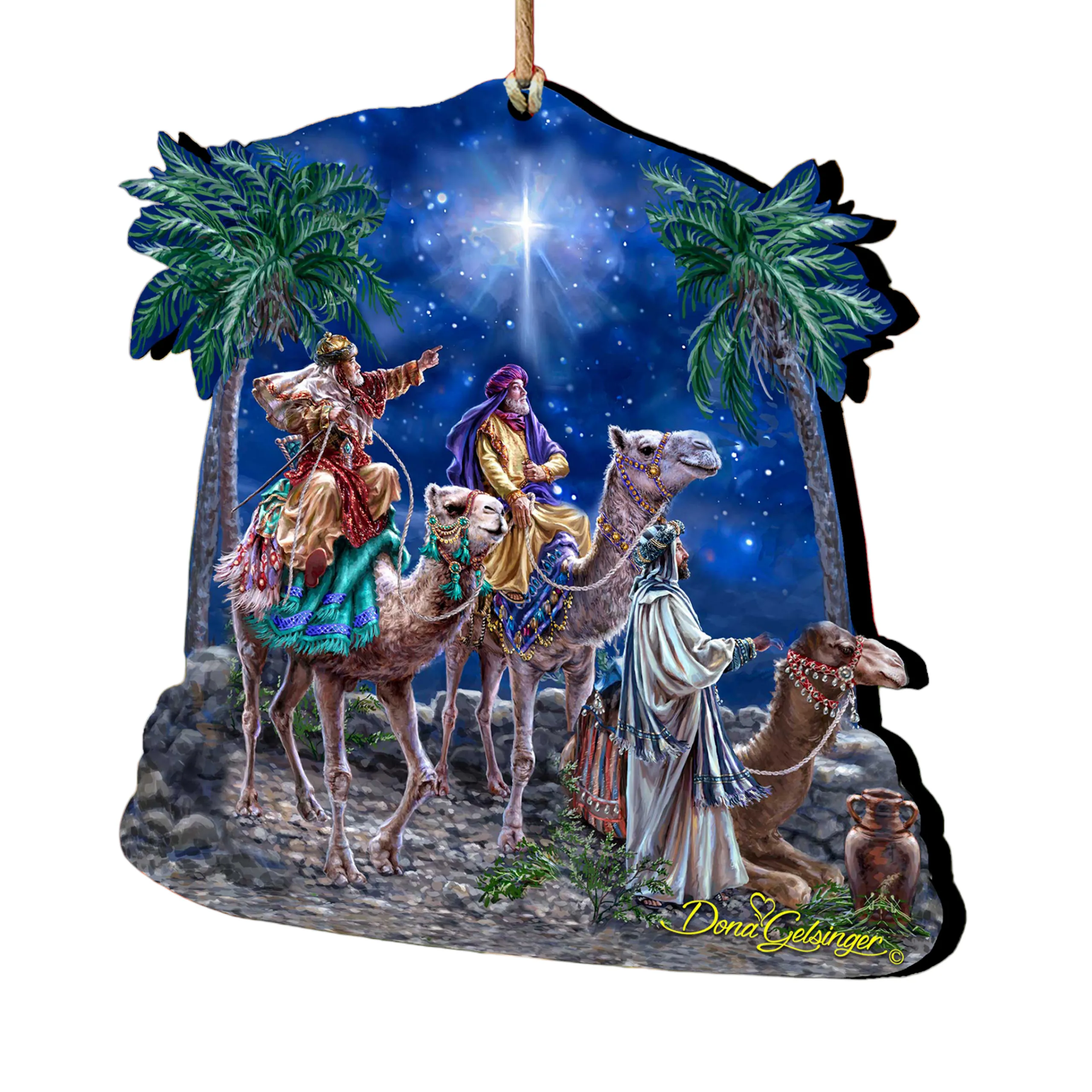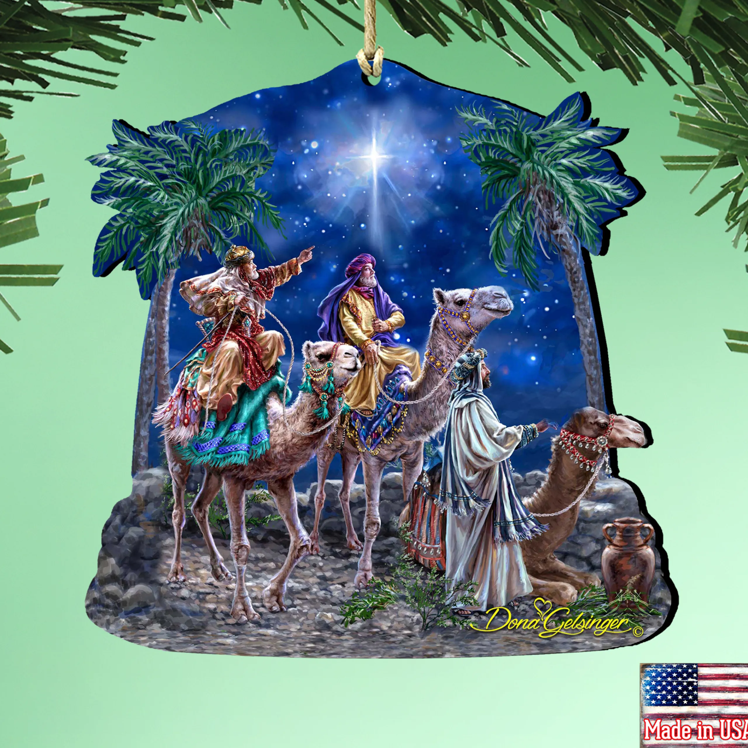 Invite The Beauty Of The Nativity Holiday Into Your Home With This Set Of Charming Ornaments. These Ornaments Depict Three Wise Men Riding A Camel While Gliding Through Stars. Each Ornament Was Handcrafted From Birch Wood And Designed By Dona Gelsinger. These Would Be A Perfect Addition To Your Home Decoration Or A Great Gift.
