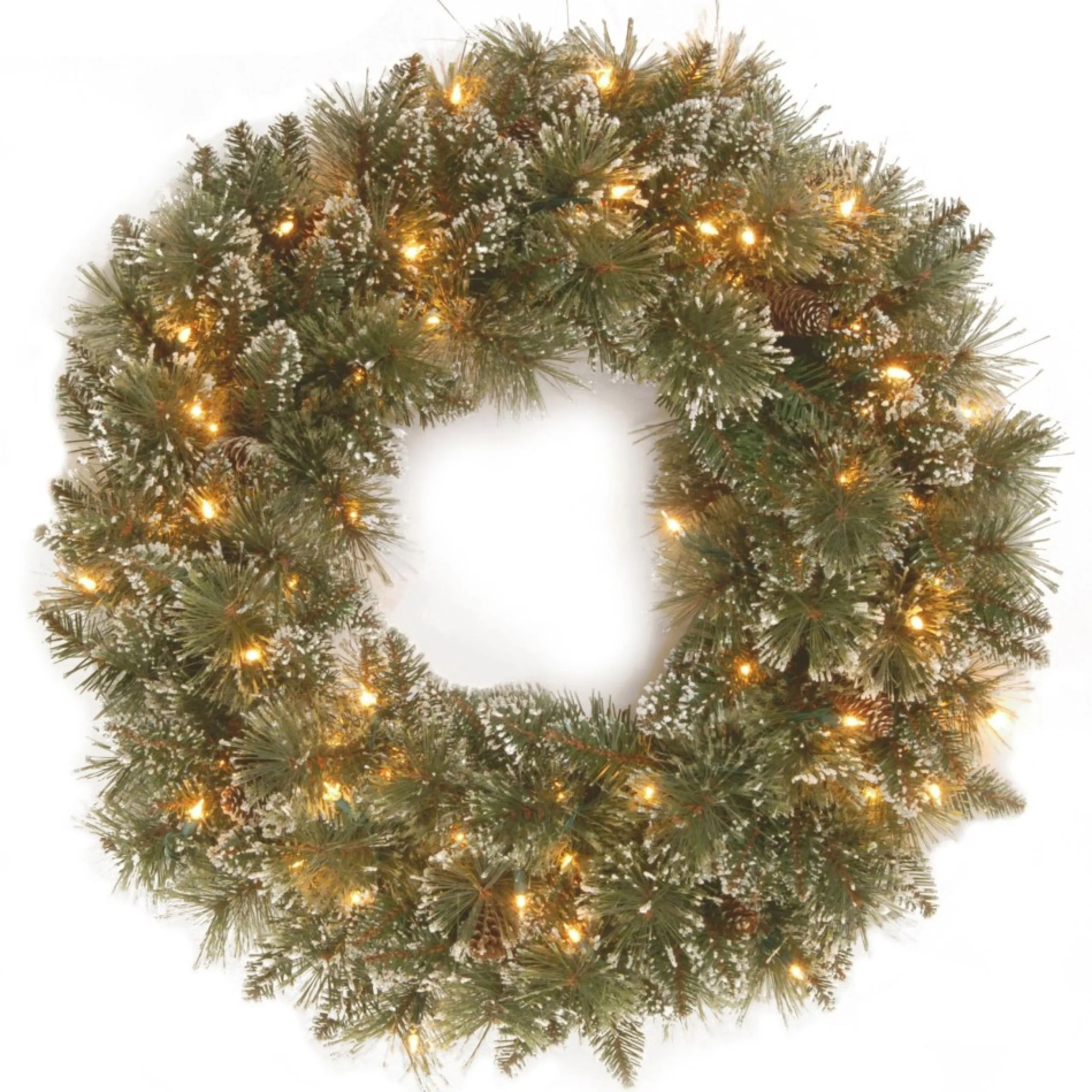 Frosted, Flocked, Iced Wreaths*National Tree Company Pre-Lit Frosted Bristle Pine Artificial Christmas Wreath, 24-Inch, White Lights