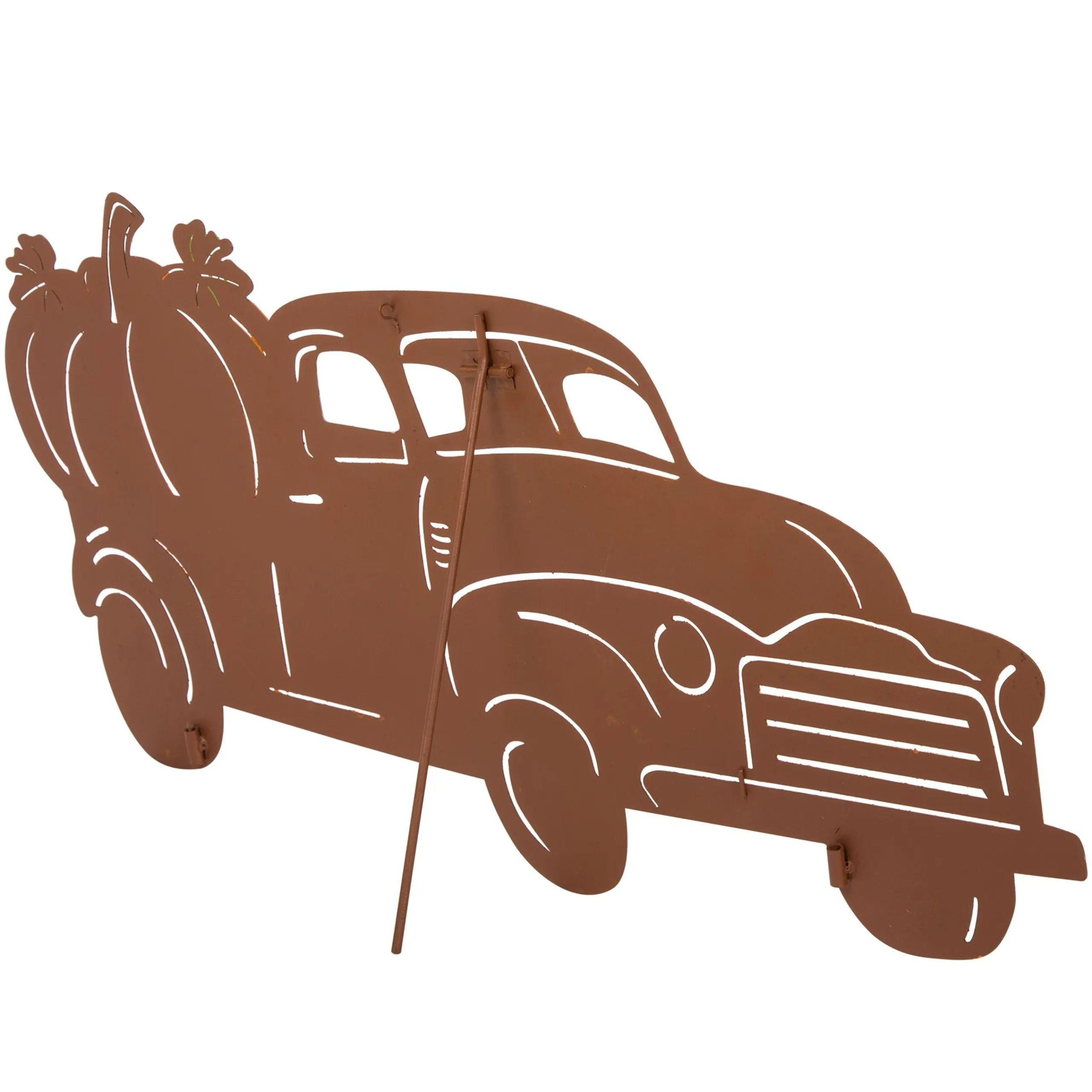 This Truck Stake Would Effortlessly Bring In A Rustic Touch To Your Abode! Tastefully Crafted Out Of Distressed Metallic Content, It Has A Pumpkin Accent Placed On It. What Makes This Accent Unique Is That It Can Be Used As Standing And Hanging Decor And A Yard Stake.