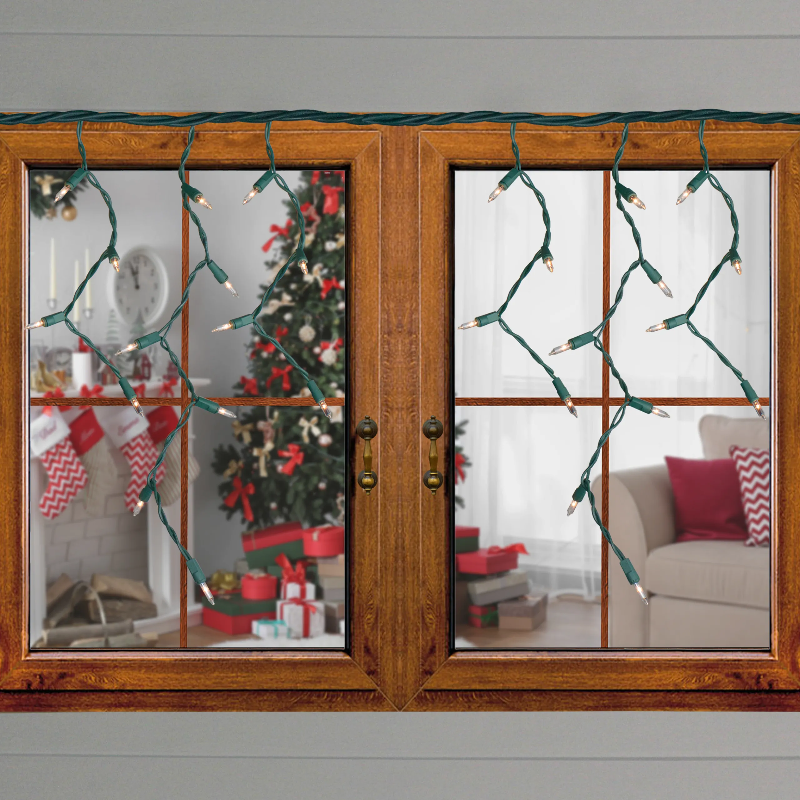 Hofert Set Of 100 Clear Everglow Mini Icicle Christmas Lights – Green Wire