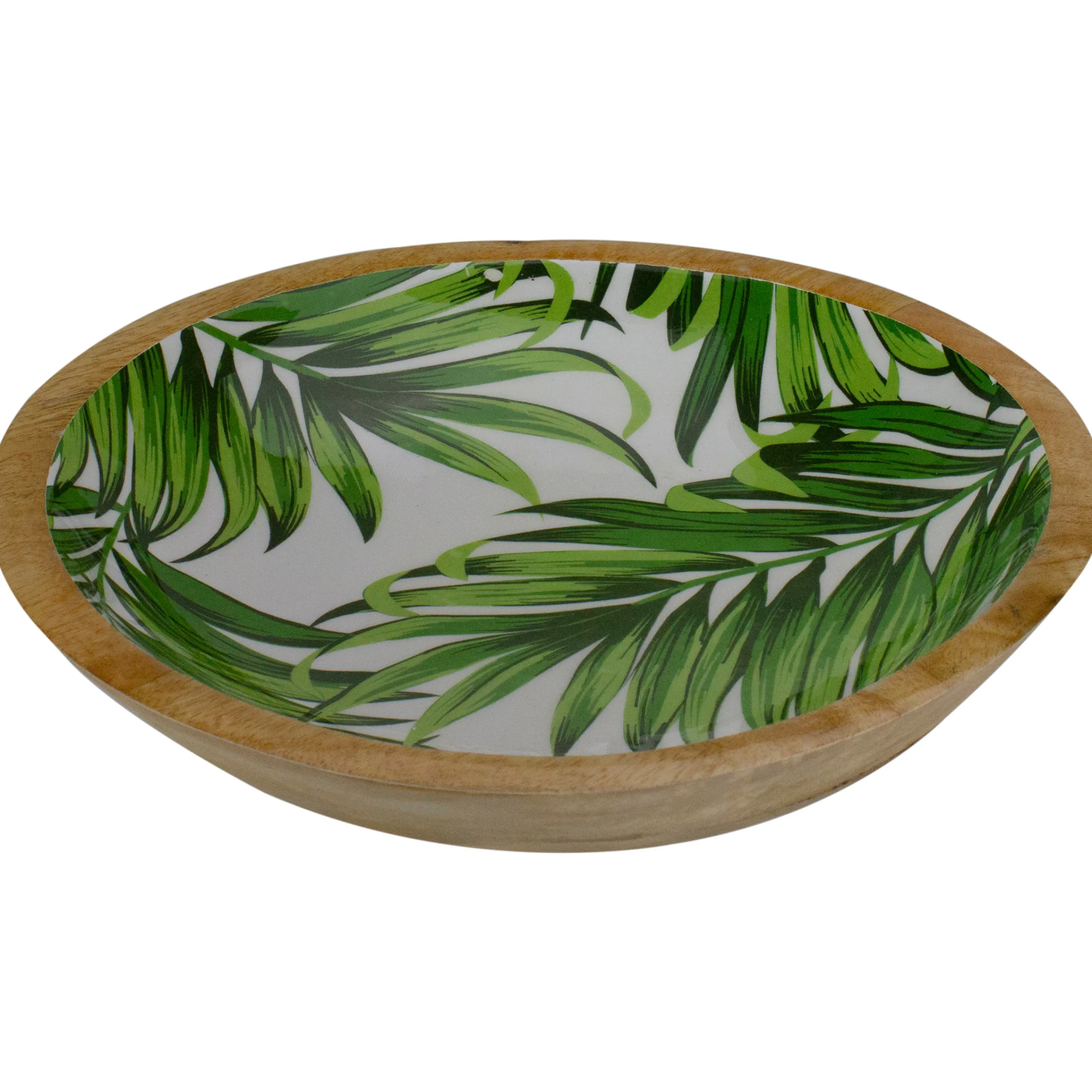 Koopman International 12″ Round Mango Wood Tropical Palm Leaf Design Serving Bowl