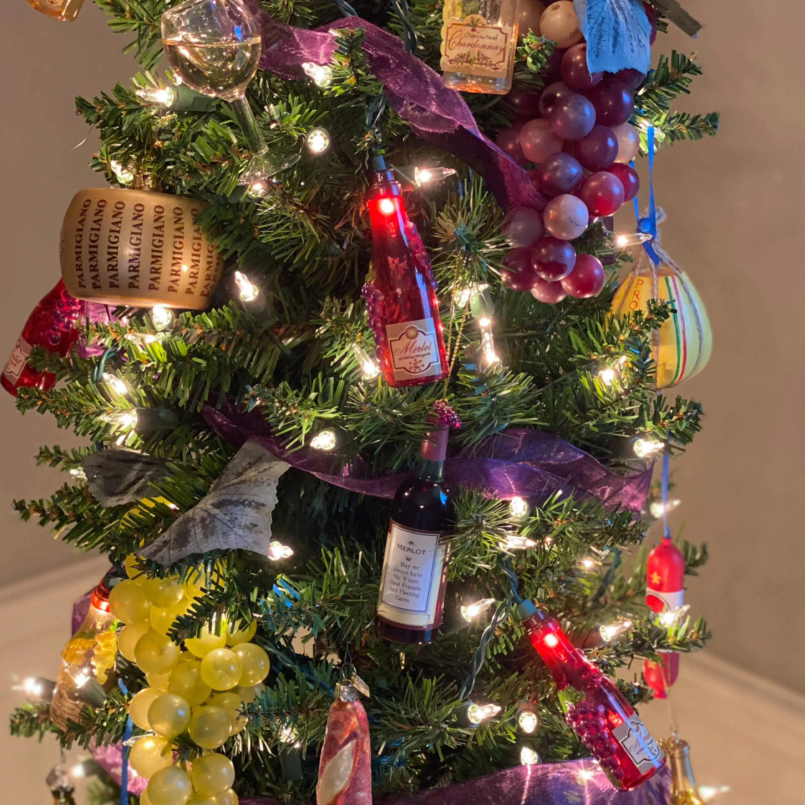 Merlot Bottle Is Dark Red With Purple Grapes And Green Leaves Reads “By Holiday Vineyards”