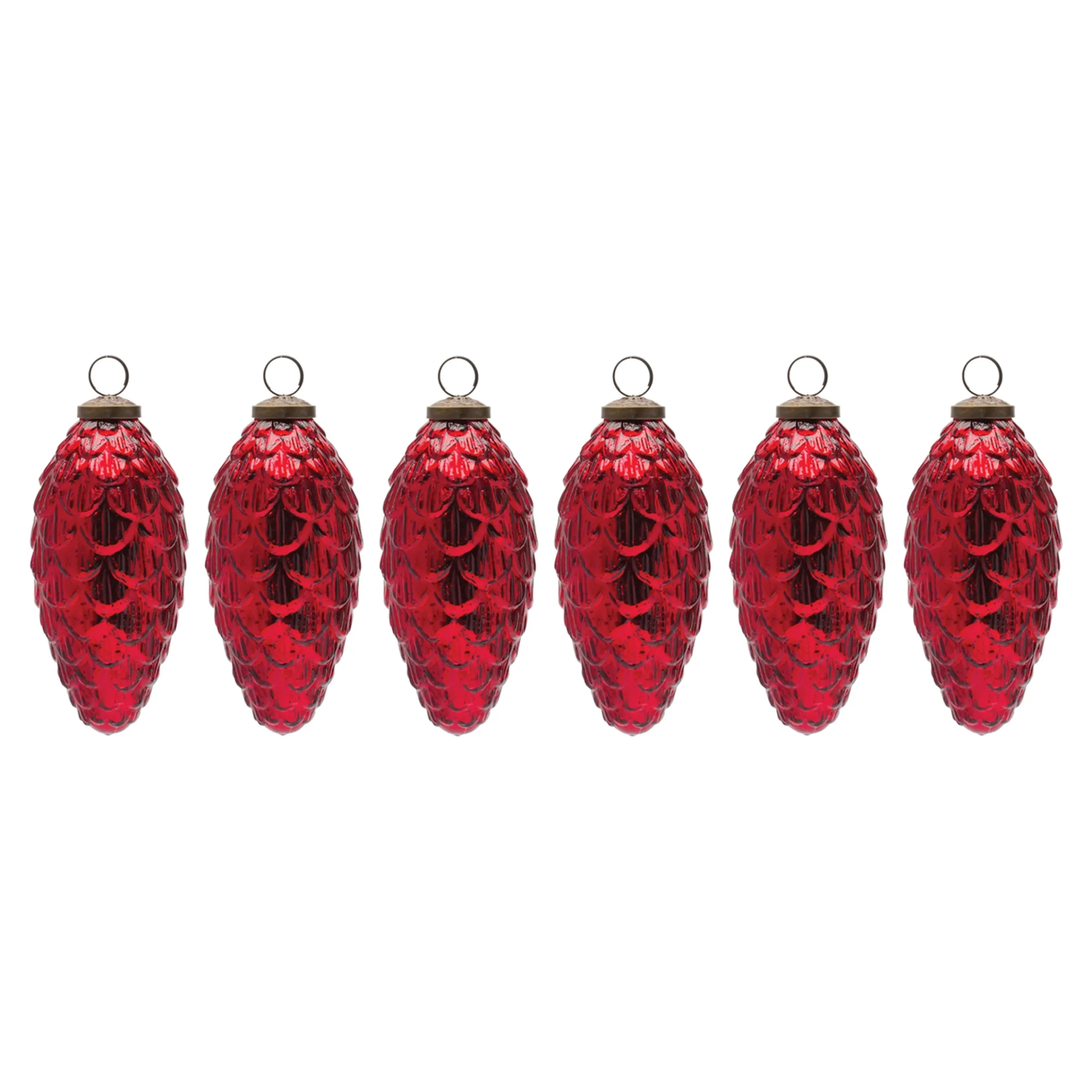 Melrose Pendants & Drops>6Ct Red Mercury Glass Pinecone Christmas Drop Ornaments 6.75″