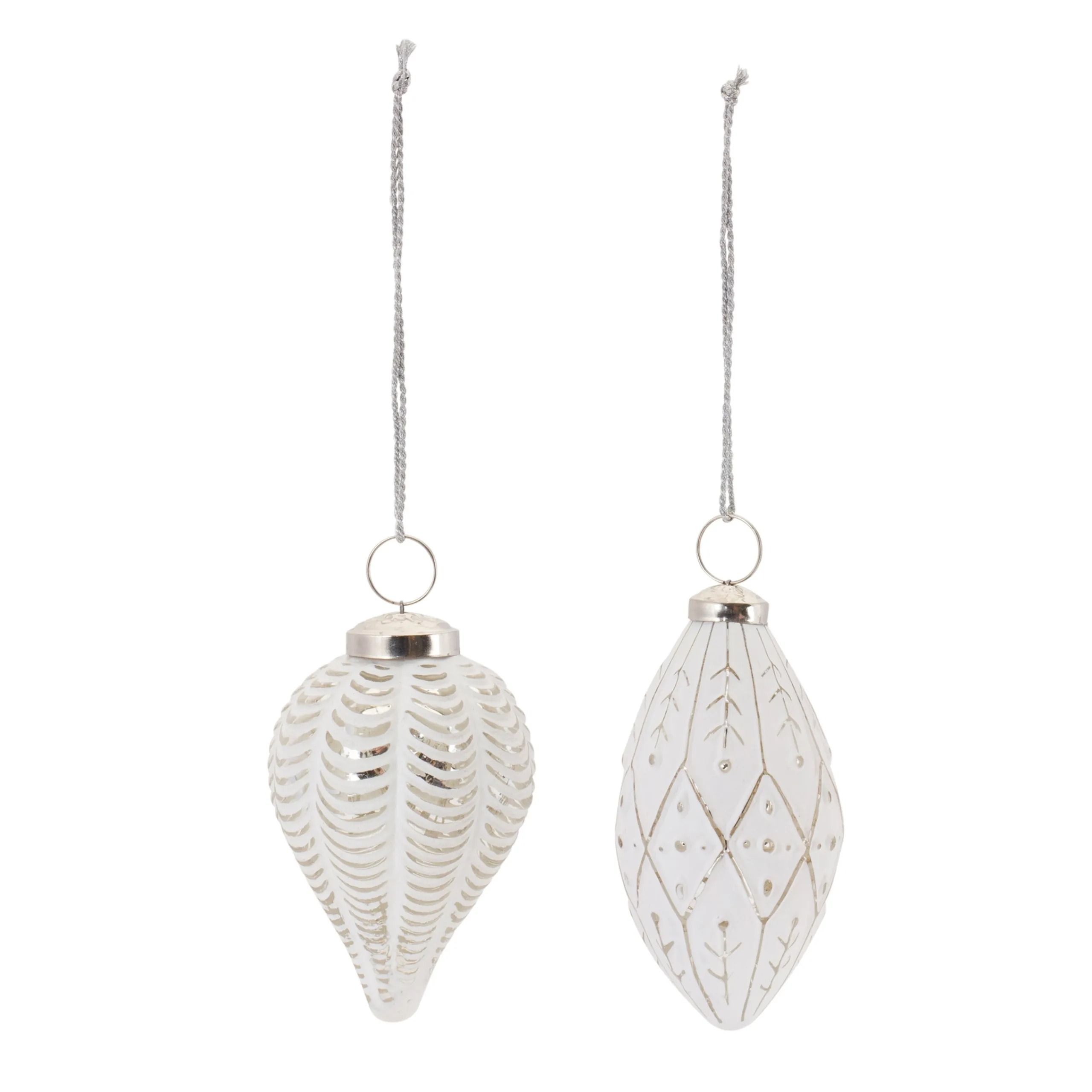 Melrose Pendants & Drops>Set Of 6 Frosted Glass Christmas Onion And Drop Ornaments 4.5″