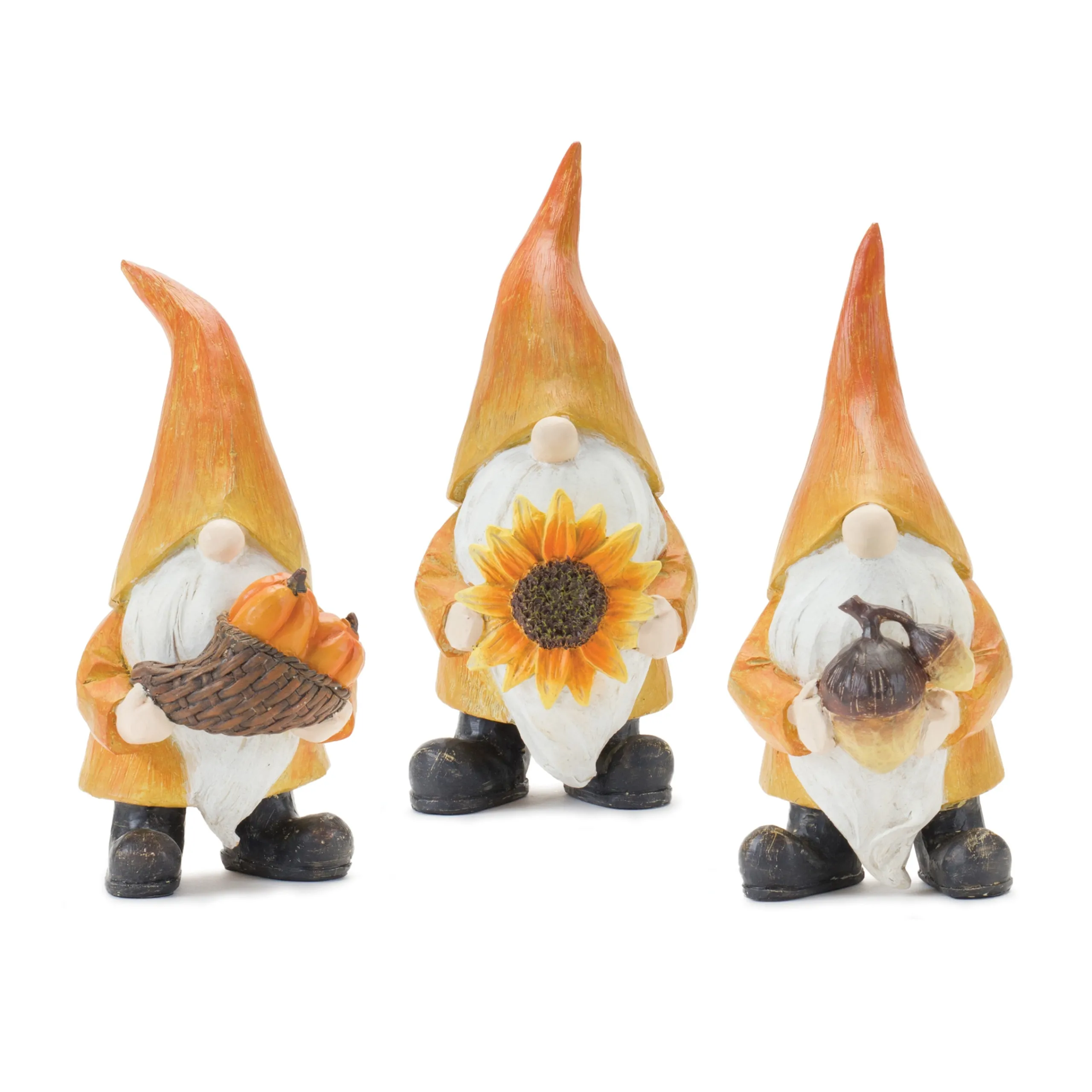 Melrose Set Of 3 Orange And White Fall Gnome Figurines 8″