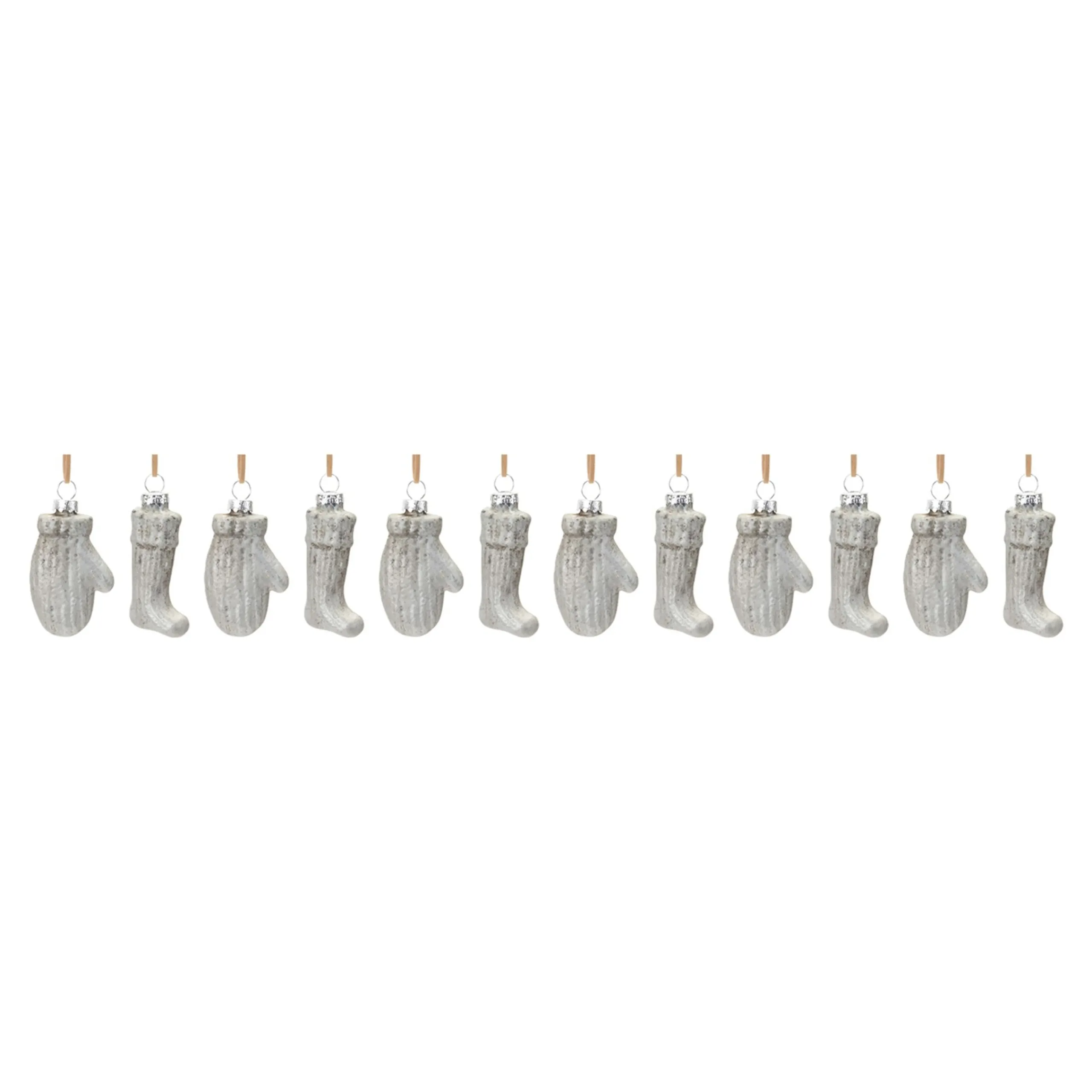 Melrose Stockings>Club Pack Of 12 Gray Mitten And Stocking Glass Christmas Ornaments 3.25″