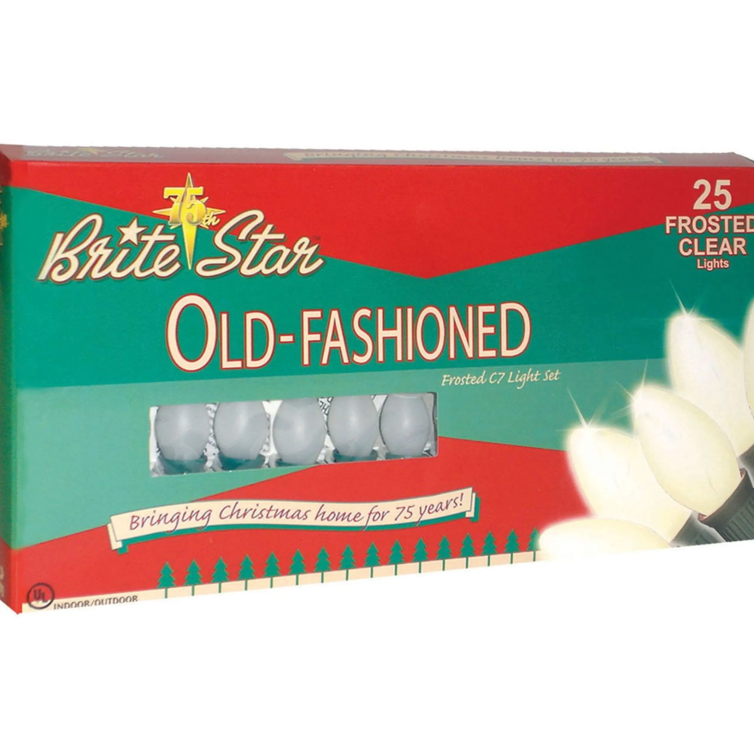 Merry and Light 25-Count Frosted White C7 Old Fashioned Christmas Lights, 25Ft Black Wire