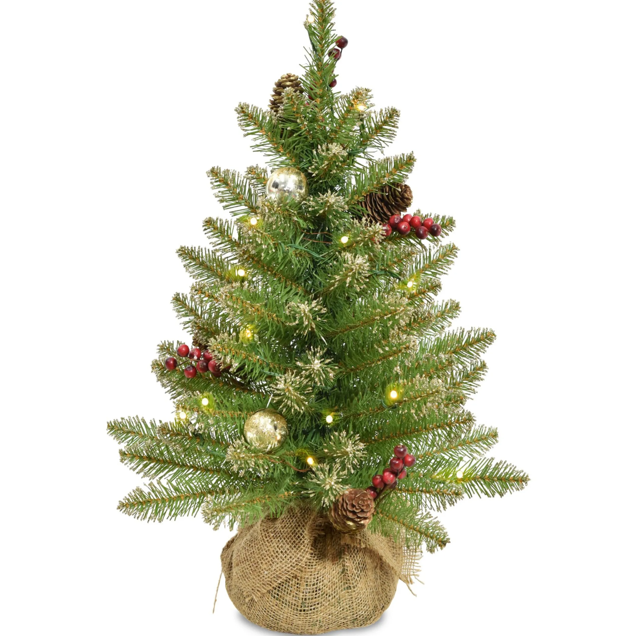National Tree Company 2.5 Feet Tall And Smaller>2′ Pre-Lit Potted Dunhill Fir Full Artificial Christmas Tree, White Led Lights