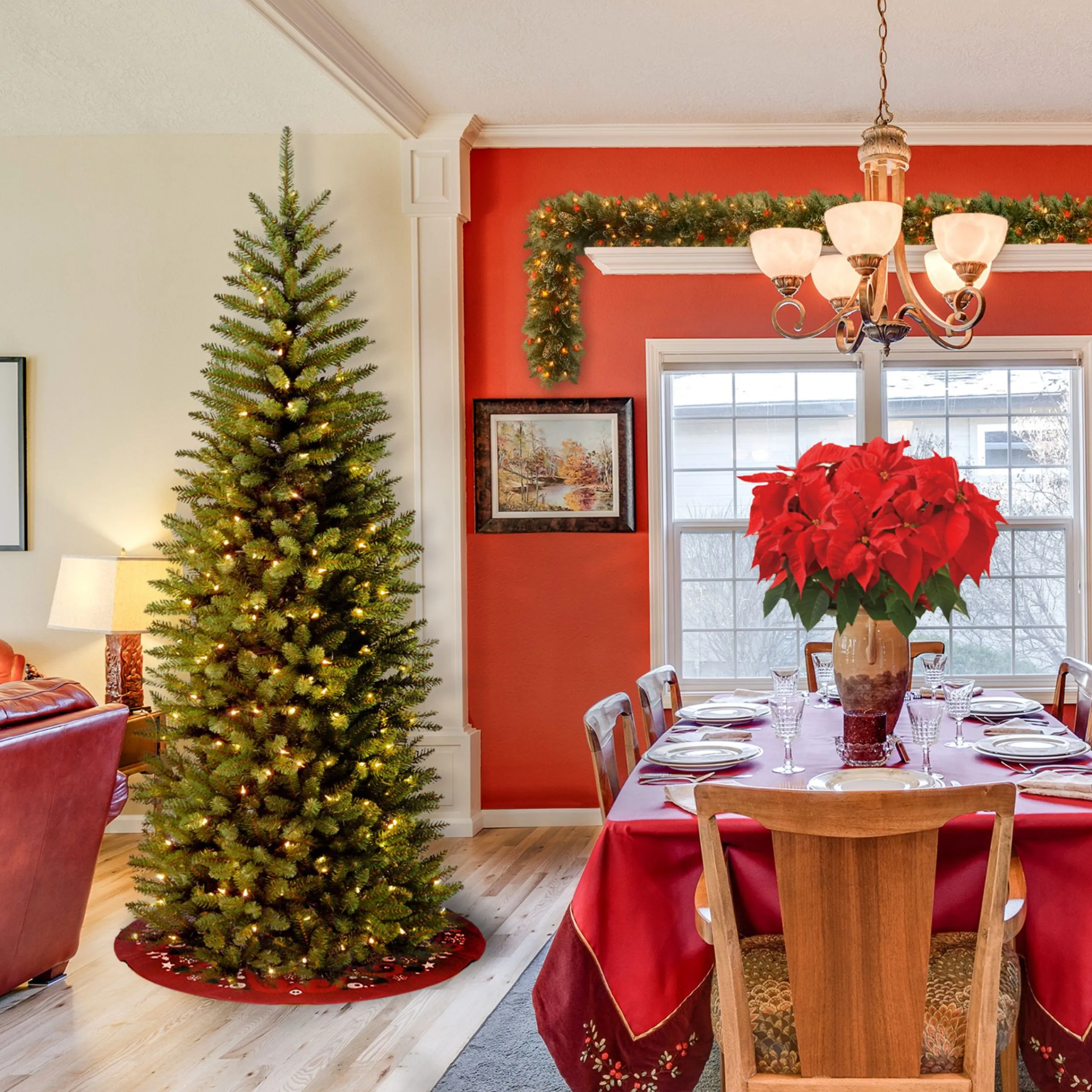 National Tree Company 6 And 6.5 Feet Tall>6′ Pre-Lit Kingswood Fir Pencil Artificial Christmas Tree, Clear Lights