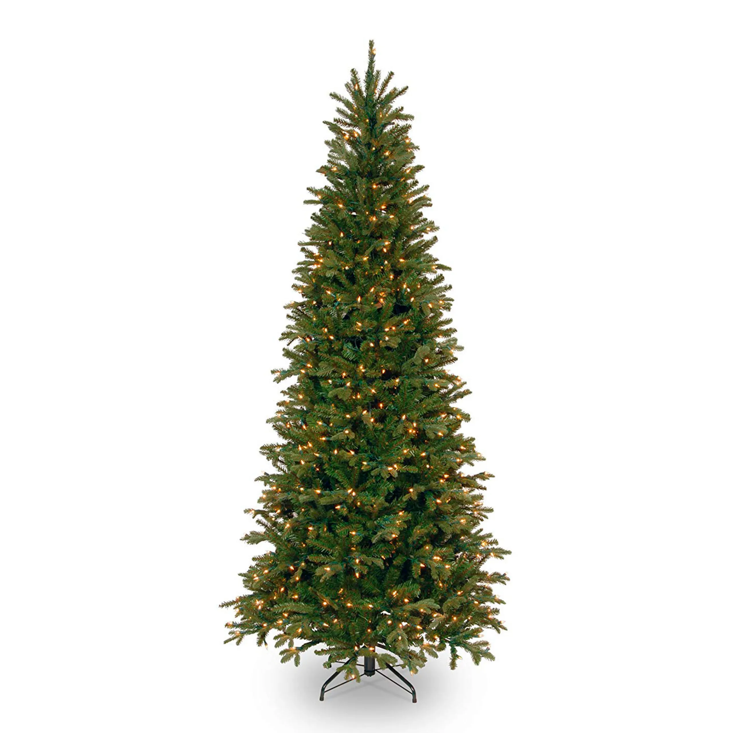 National Tree Company 9 And 9.5 Feet Tall>9′ Pre-Lit Slim Tiffany Fir Artificial Christmas Tree, Clear Lights