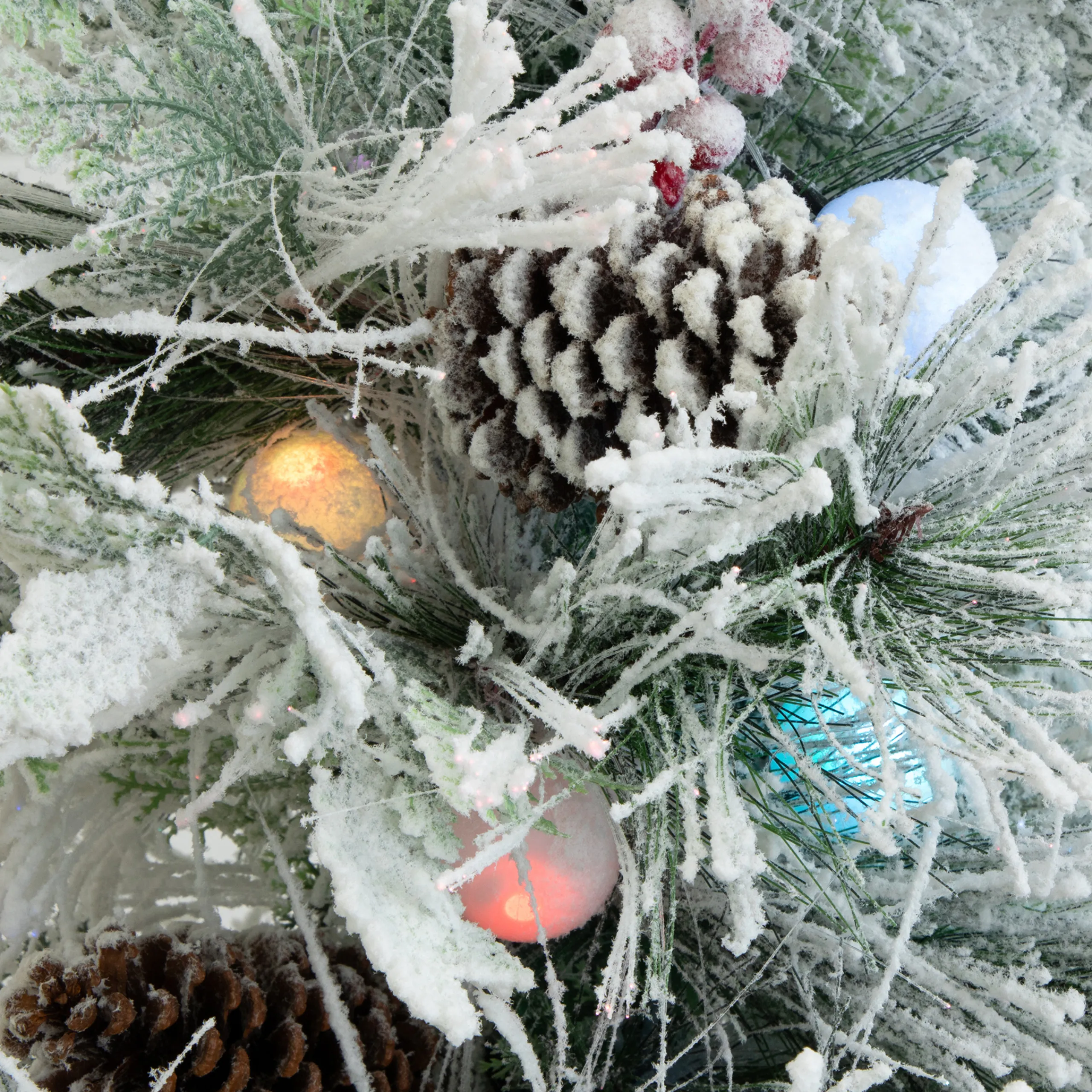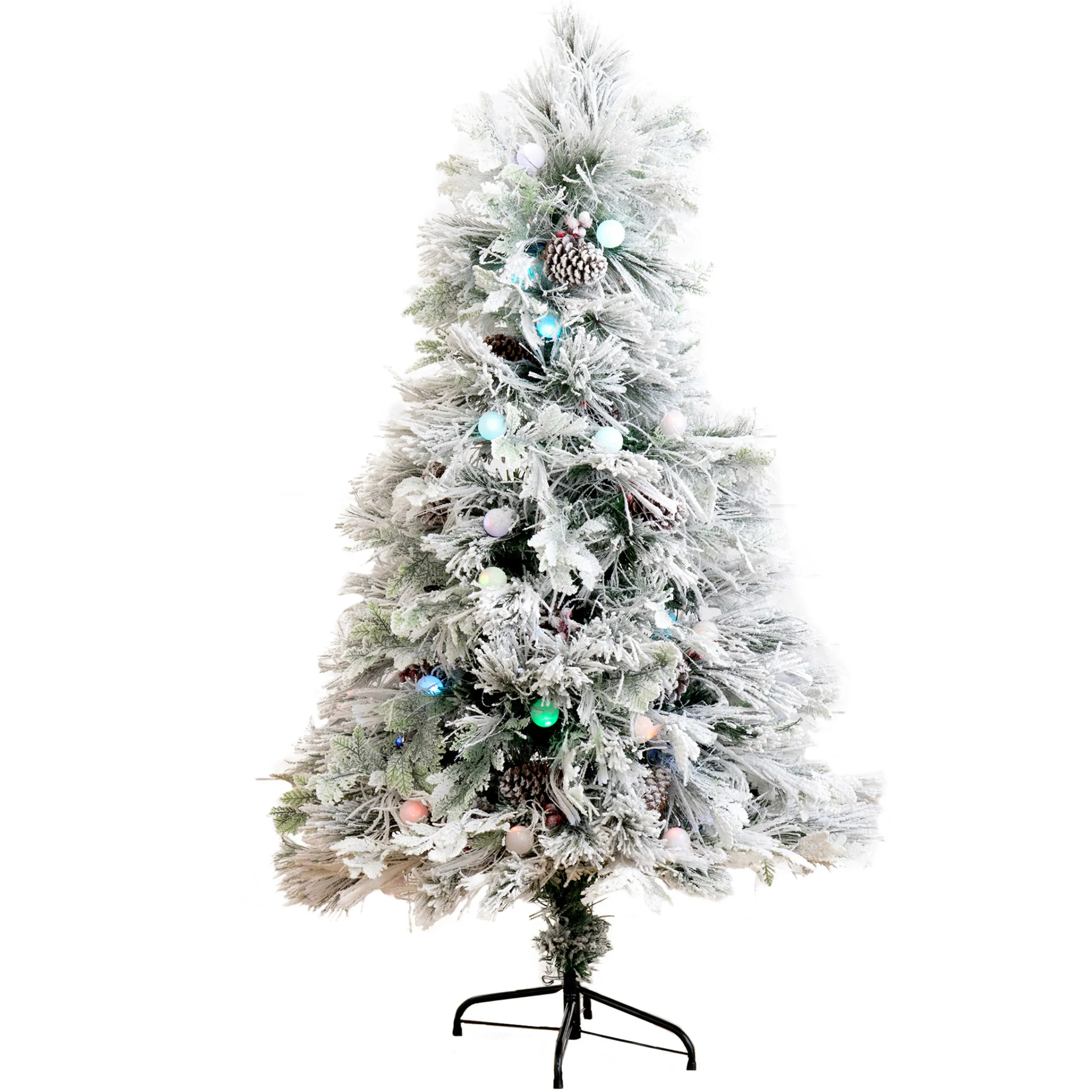 Elevate Your Holiday Decor With This Pre Lit Flocked Artificial Christmas Tree. This Stunning Tree Brings The Magic Of A White Christmas To Life, Featuring A Snow Dusted Appearance Adorned With Lifelike Pinecones And Berries For That Rustic Charm. The Real Enchantment Comes From Its 50 Multicolor Bubble Gum Led Lights And Color Changing Fiber Optic Tips, Casting A Mesmerizing Light Show That Will Make Your Tree The Ultimate Gathering Spot. With An Easy Plug In Setup, This Tree Is A Showstopper On Its Own.