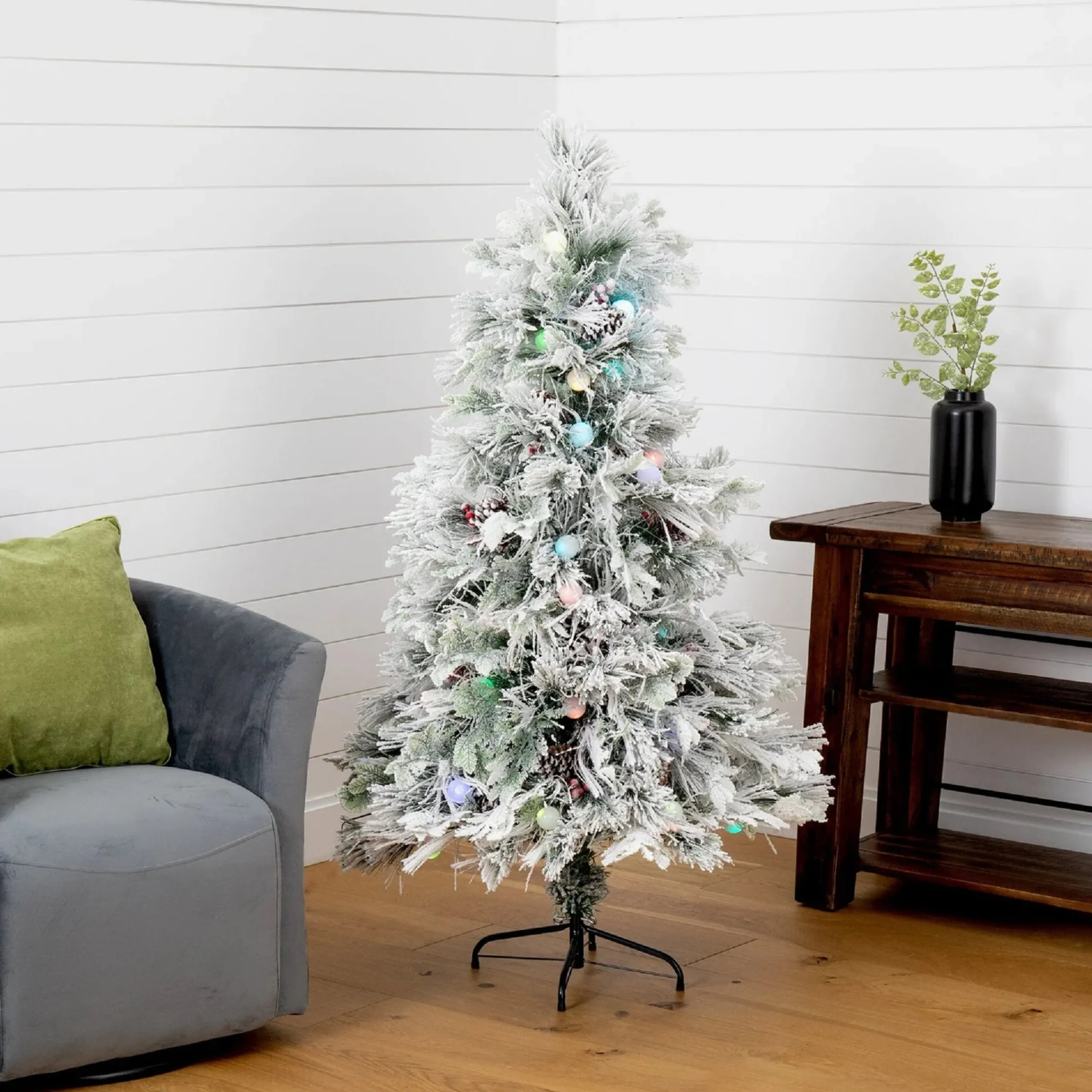 Nearly Natural 5 And 5.5 Feet Tall>5′ Pre-Lit Flocked Fiber Optic Artificial Christmas Tree, Multicolor Led Lights