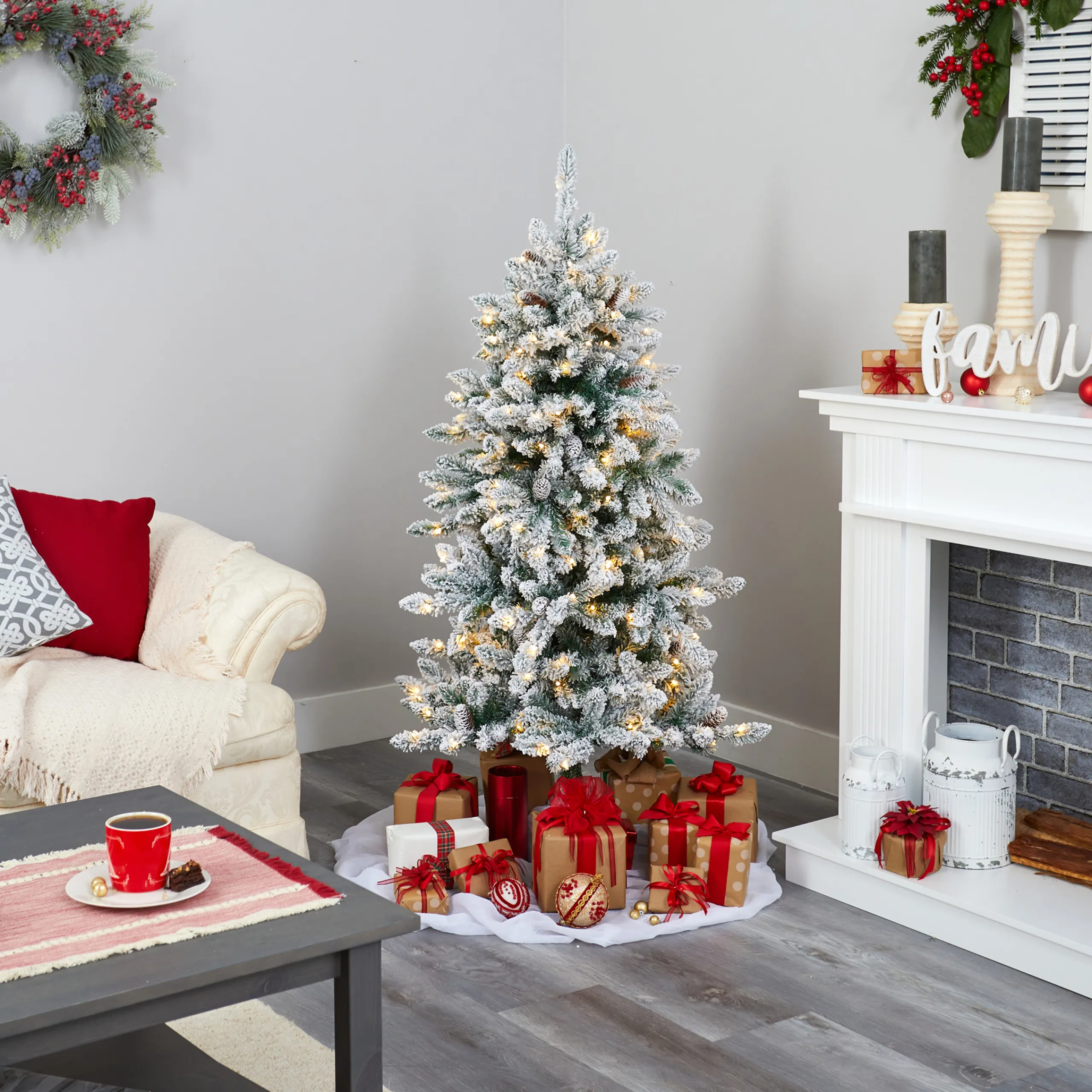Nearly Natural 5 And 5.5 Feet Tall>5′ Pre-Lit Flocked Livingston Fir Artificial Christmas Tree, Warm Clear Led Lights