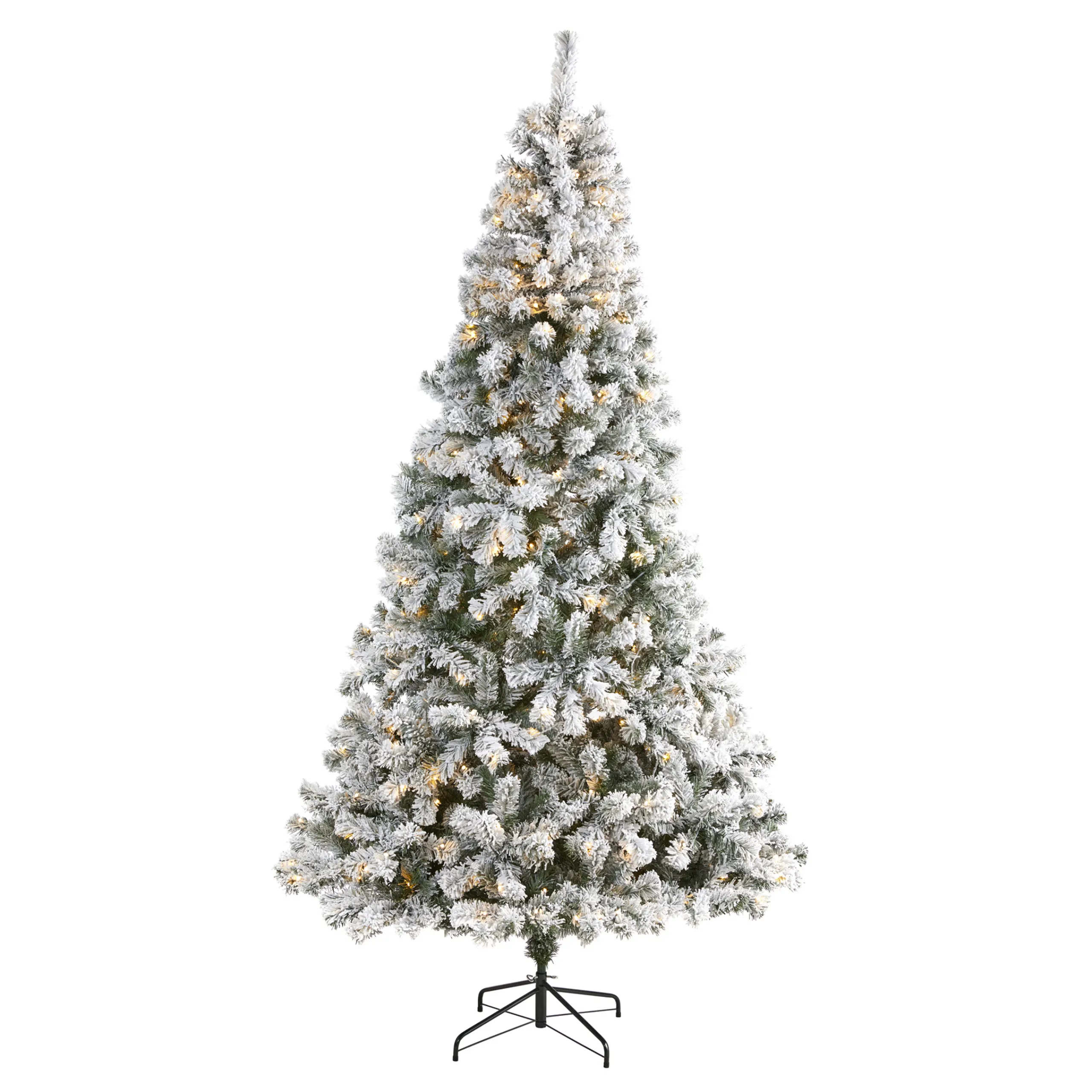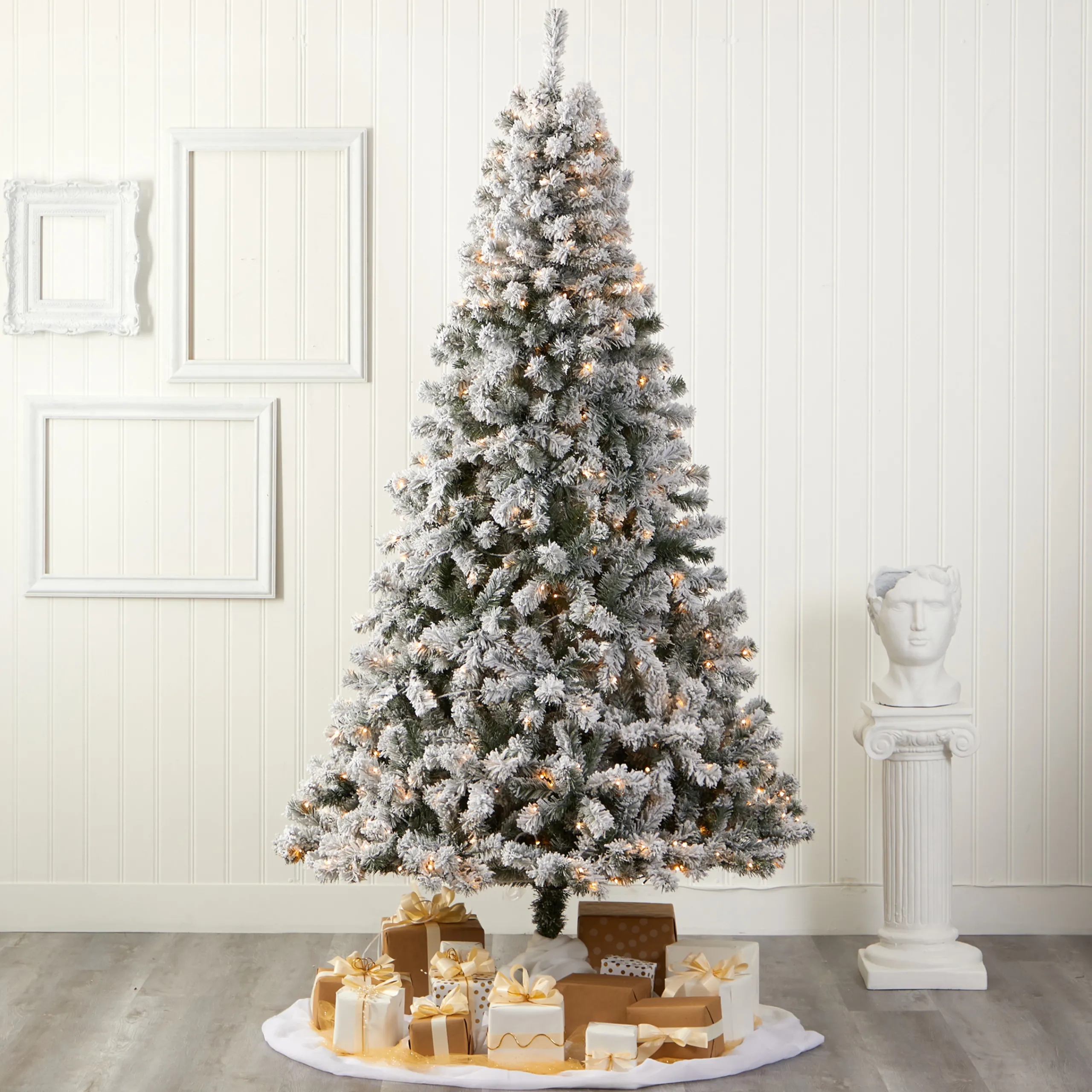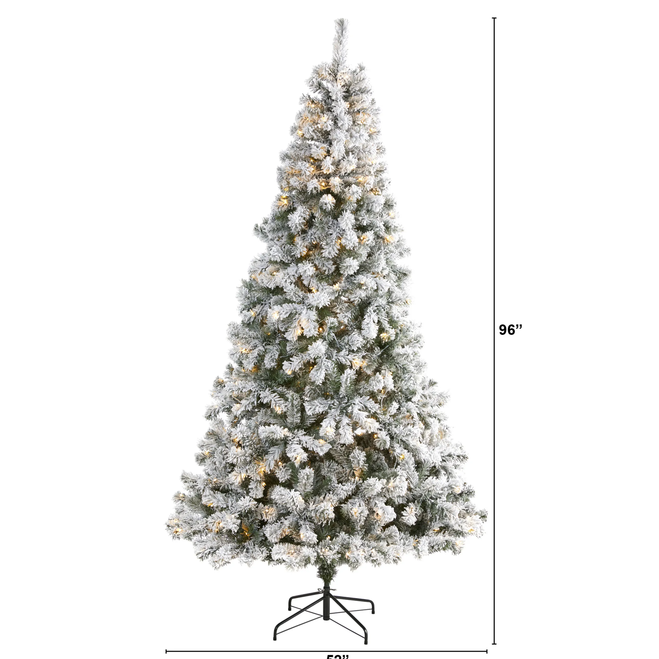 Nearly Natural 8 And 8.5 Feet Tall>8′ Pre-Lit Flocked Fir Artificial Christmas Tree, Clear Led Lights