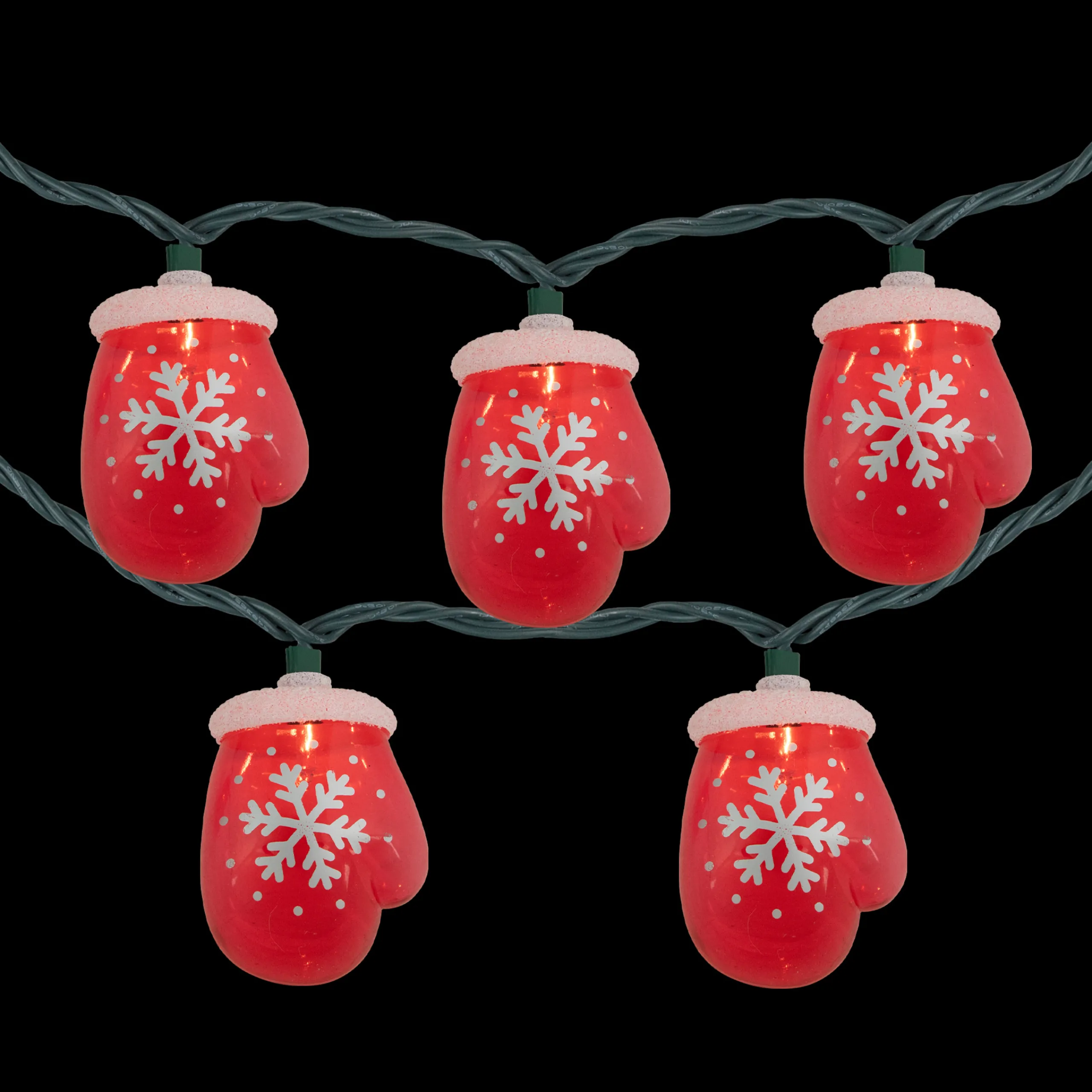 Northlight 10 Count Red Snowflake Mitten Christmas Light Set, 7.5Ft Green Wire