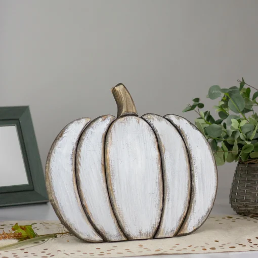 Northlight 13.75 White Wooden Pumpkin Fall Harvest Decoration