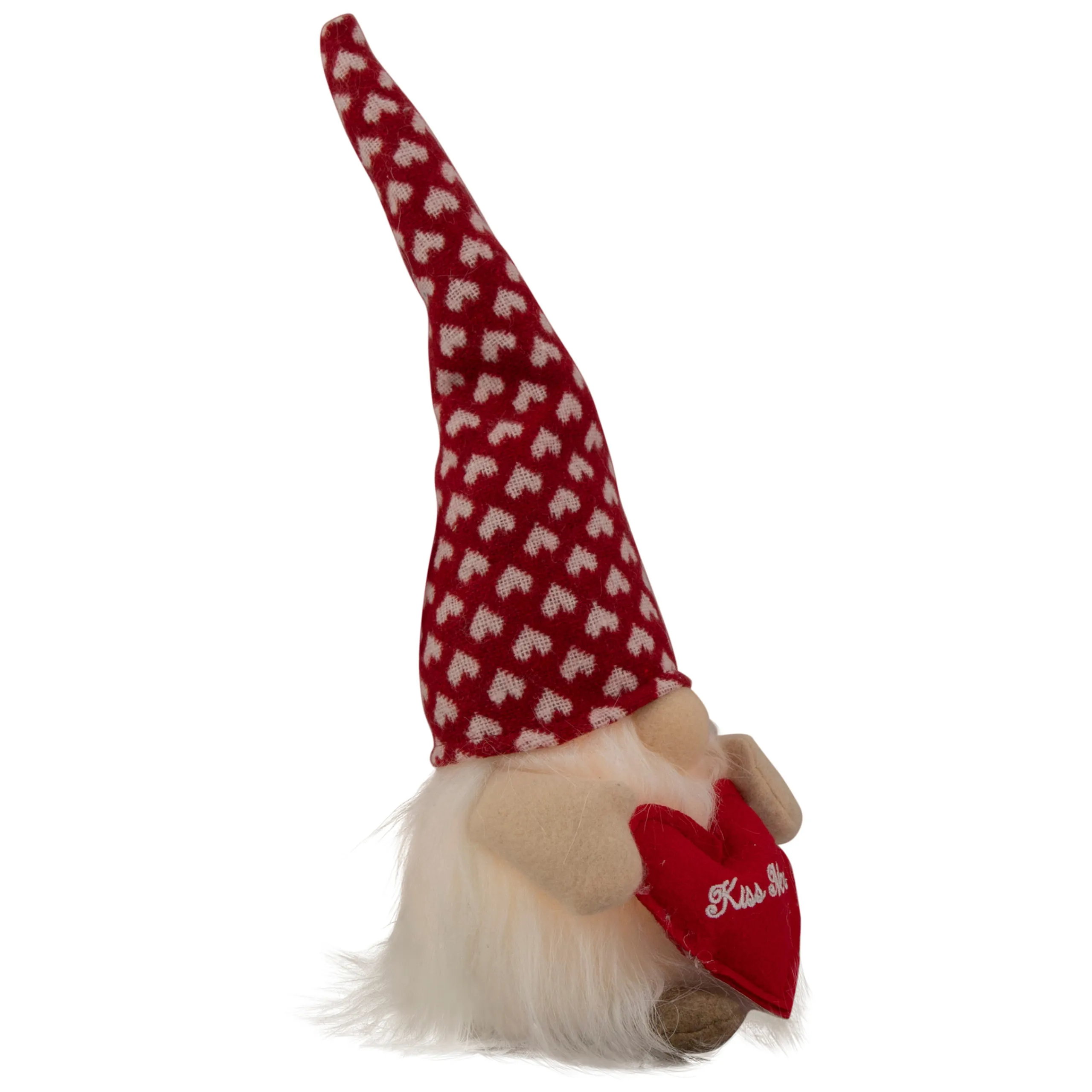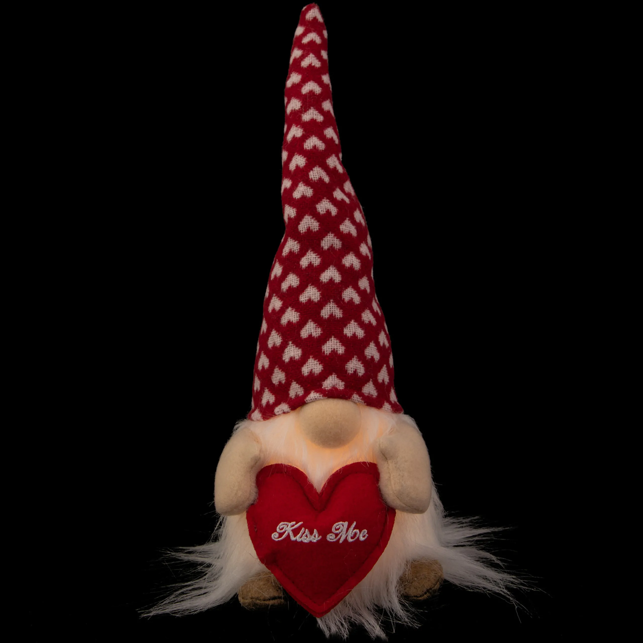 Gnomes Are Best Known For Guarding Earthly Treasures, Providing Good Luck, And Are Perfect For Protecting Your Goodies. This Gnome Is Wearing A Red Hat With A White Heart Pattern That Lights Up. He Holds A Red Heart That Reads ‘Kiss Me’. Place This Gnome On Your Mantle, Or Alone On Any Table.