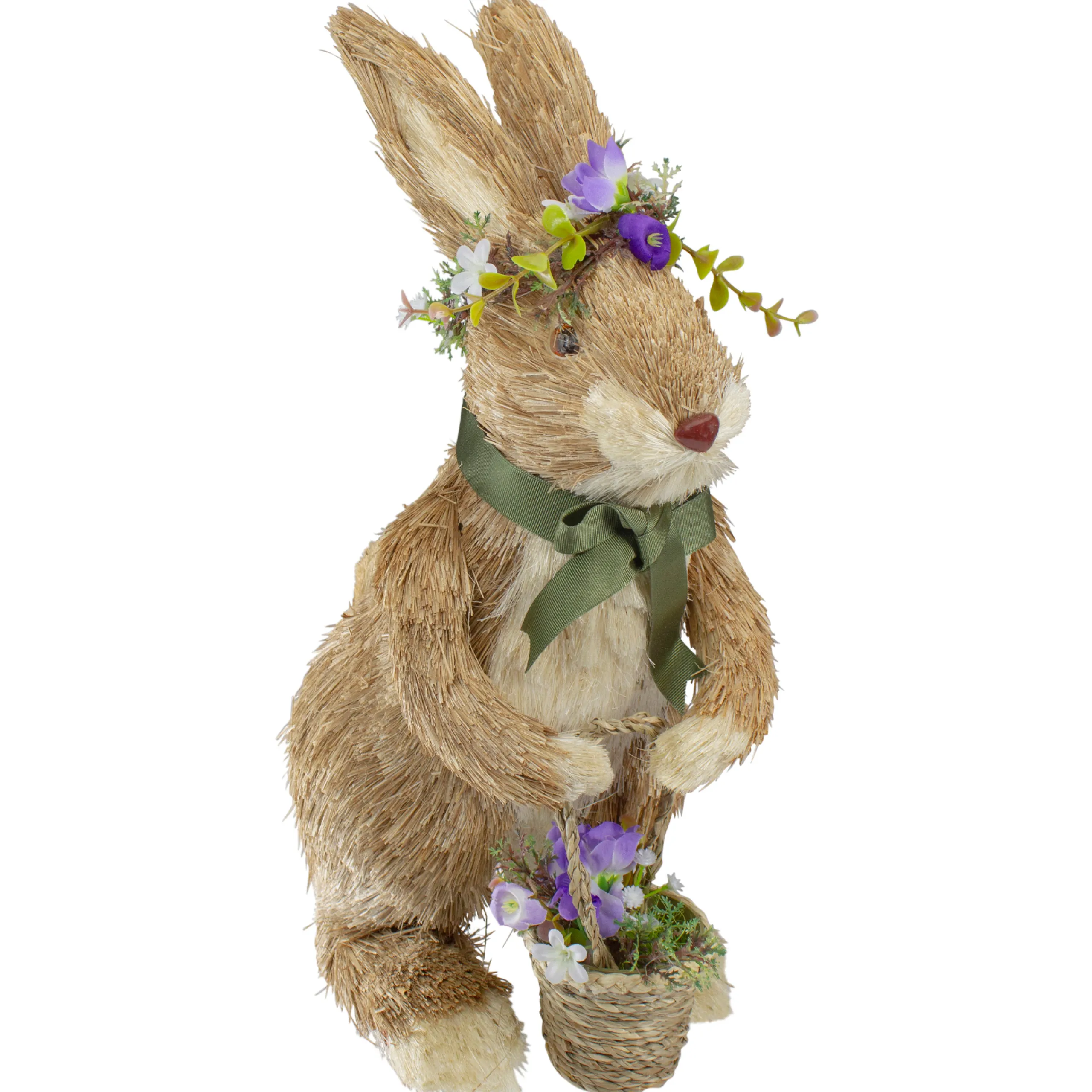 Bring Home That Easter Feeling Today With This Bunny Rabbit Figure. This Rabbit Is Brown In Color And Holds A Basketfull Of Flowers With A Green Ribbon Around Its Neck And A Floral Crown. This Bunny Figure Will Be A Perfect Addition To Your Holiday Or Spring Decor For Years To Come.