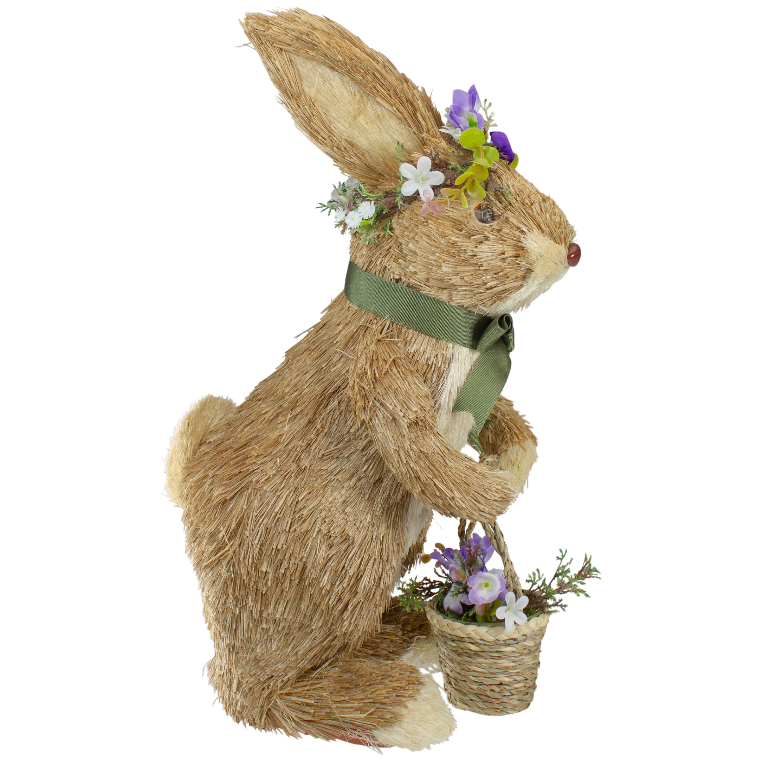 Northlight 15″ Brown Sisal Bunny Rabbit With Basket Easter Figure