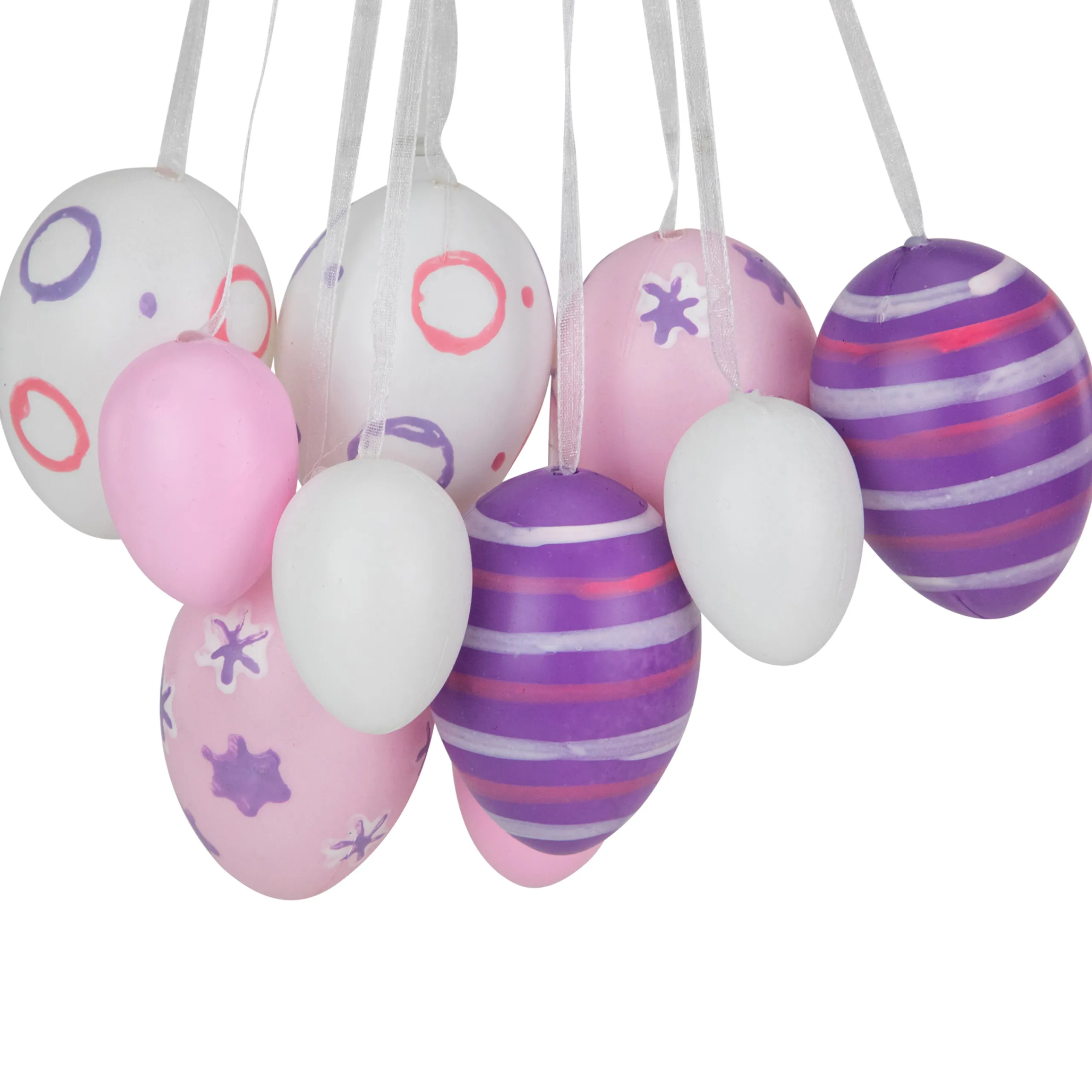 Northlight 15″ Pink, White And Purple Floral Striped Spring Easter Egg Cluster Hanging Decor