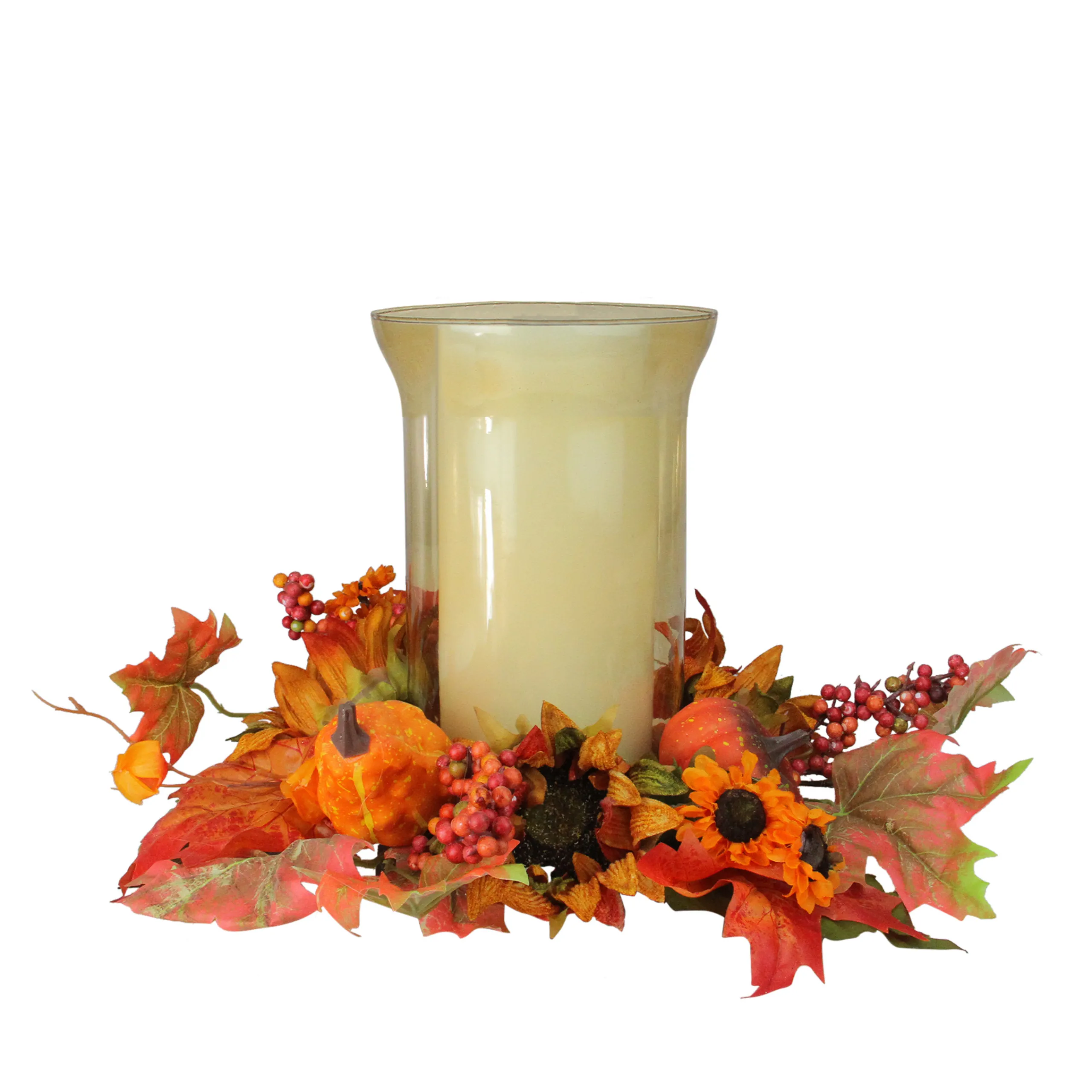 Northlight 16″ Orange And Red Sunflower With Pumpkin Fall Pillar Candle Holder