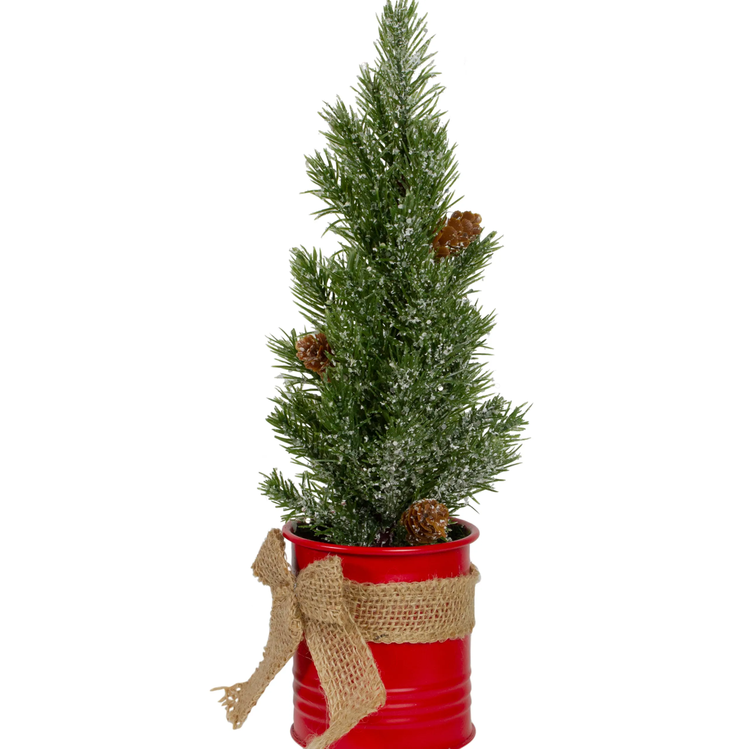 Northlight 2.5 Feet Tall And Smaller>11.75″ Frosted Upswept Mini Pine Christmas Tree In Red Tin Pot – Unlit