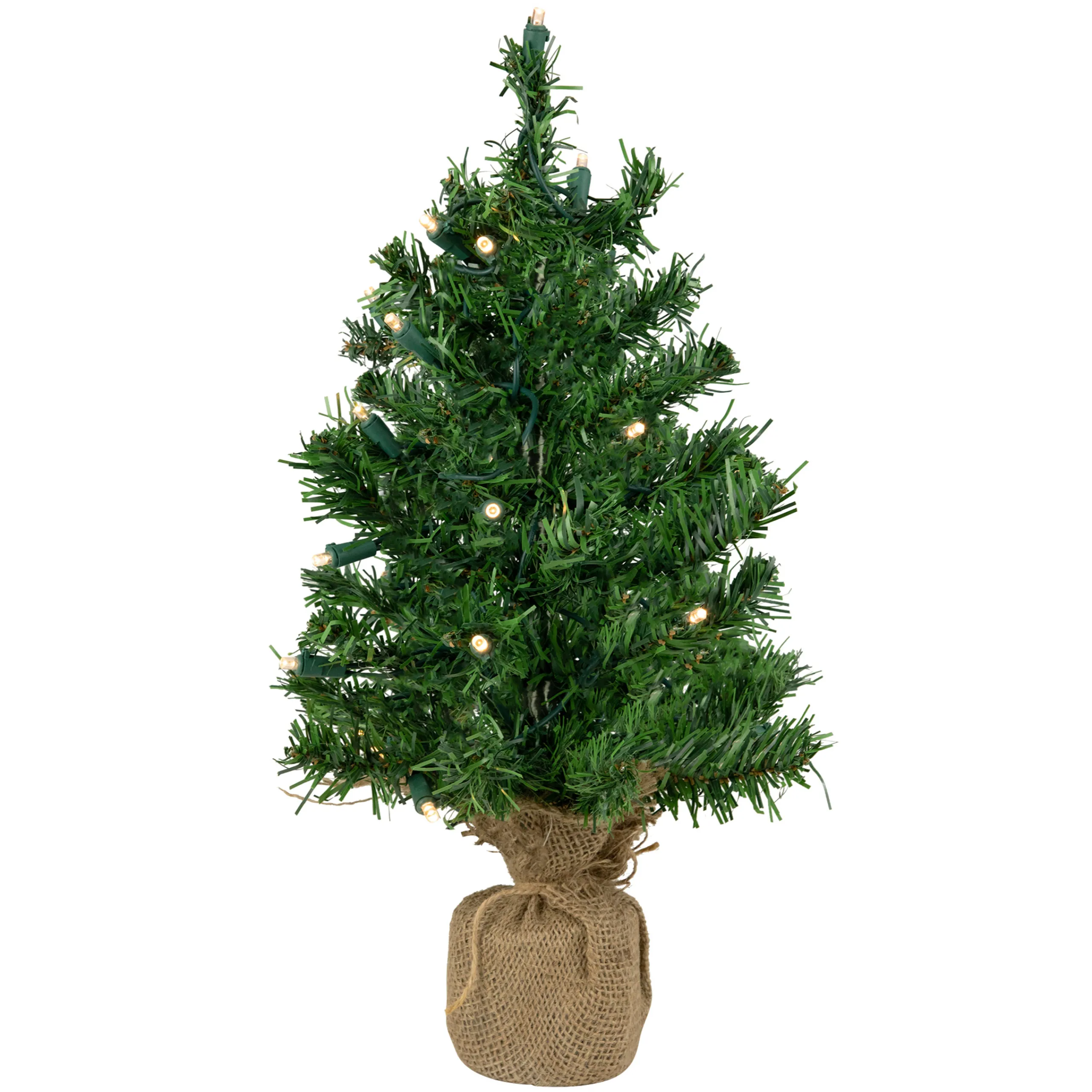 Northlight 2.5 Feet Tall And Smaller>18″ Pre-Lit Two-Tone Green Pine Artificial Christmas Tree In Burlap, Clear Led Lights