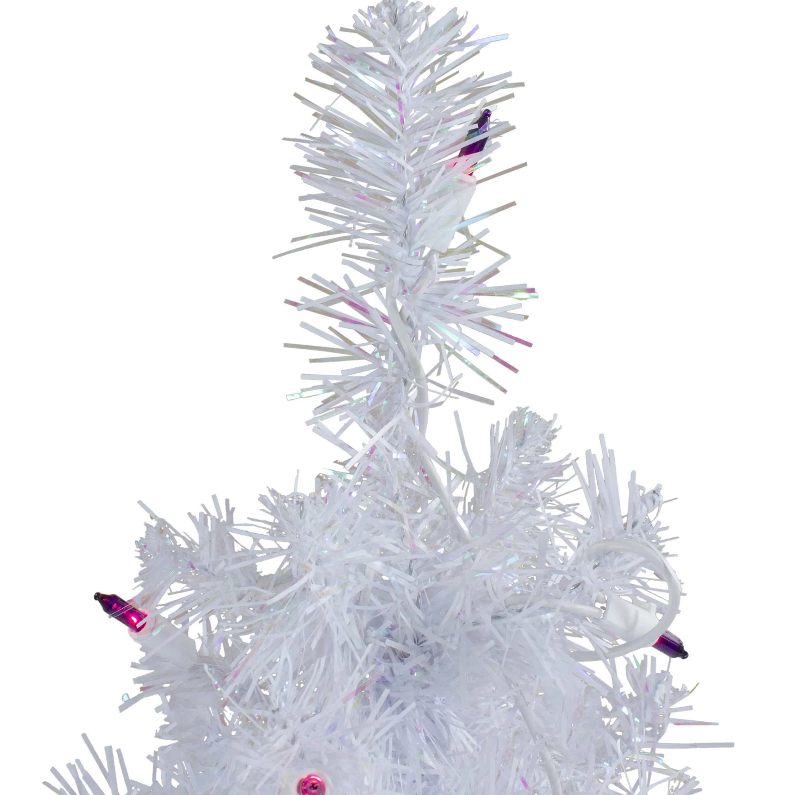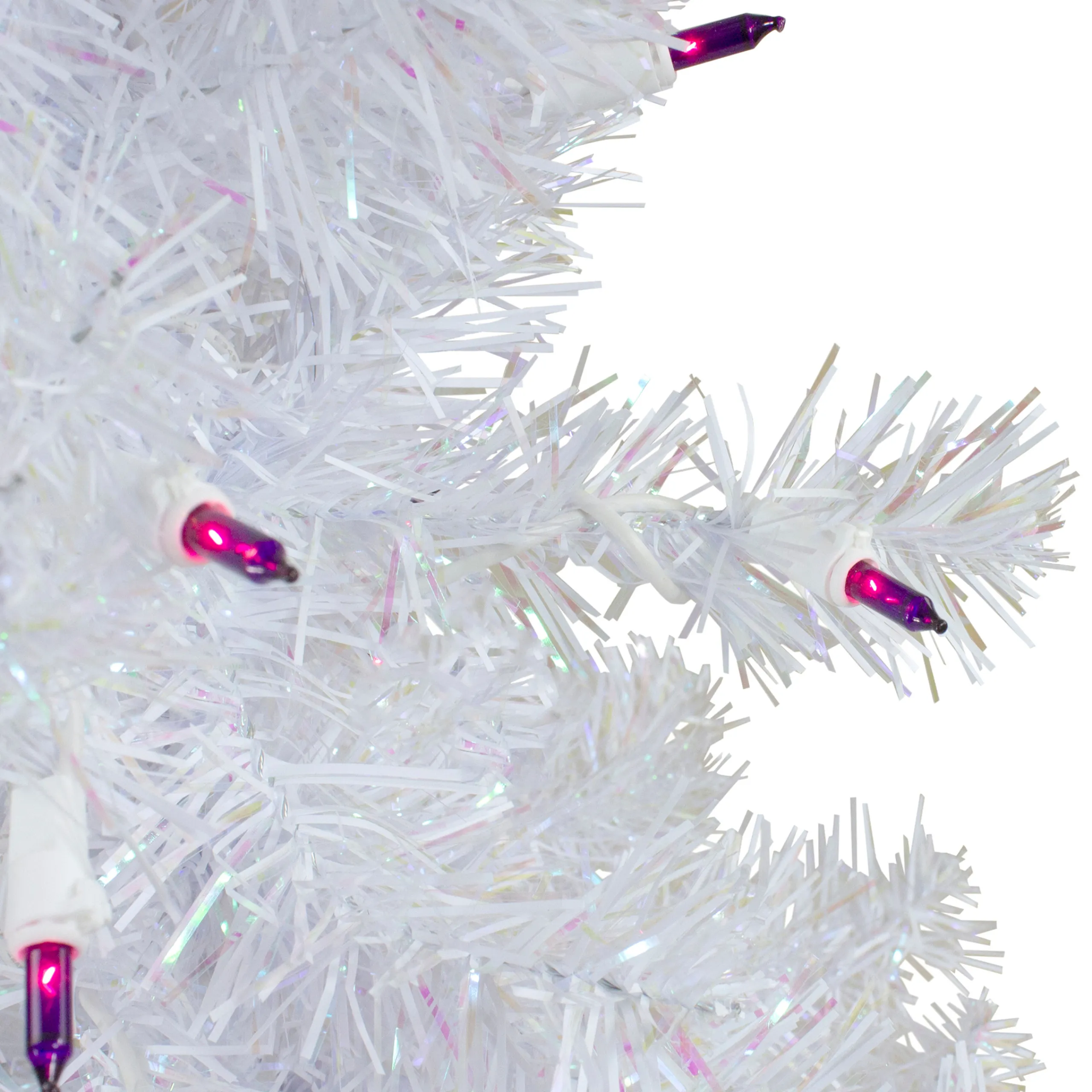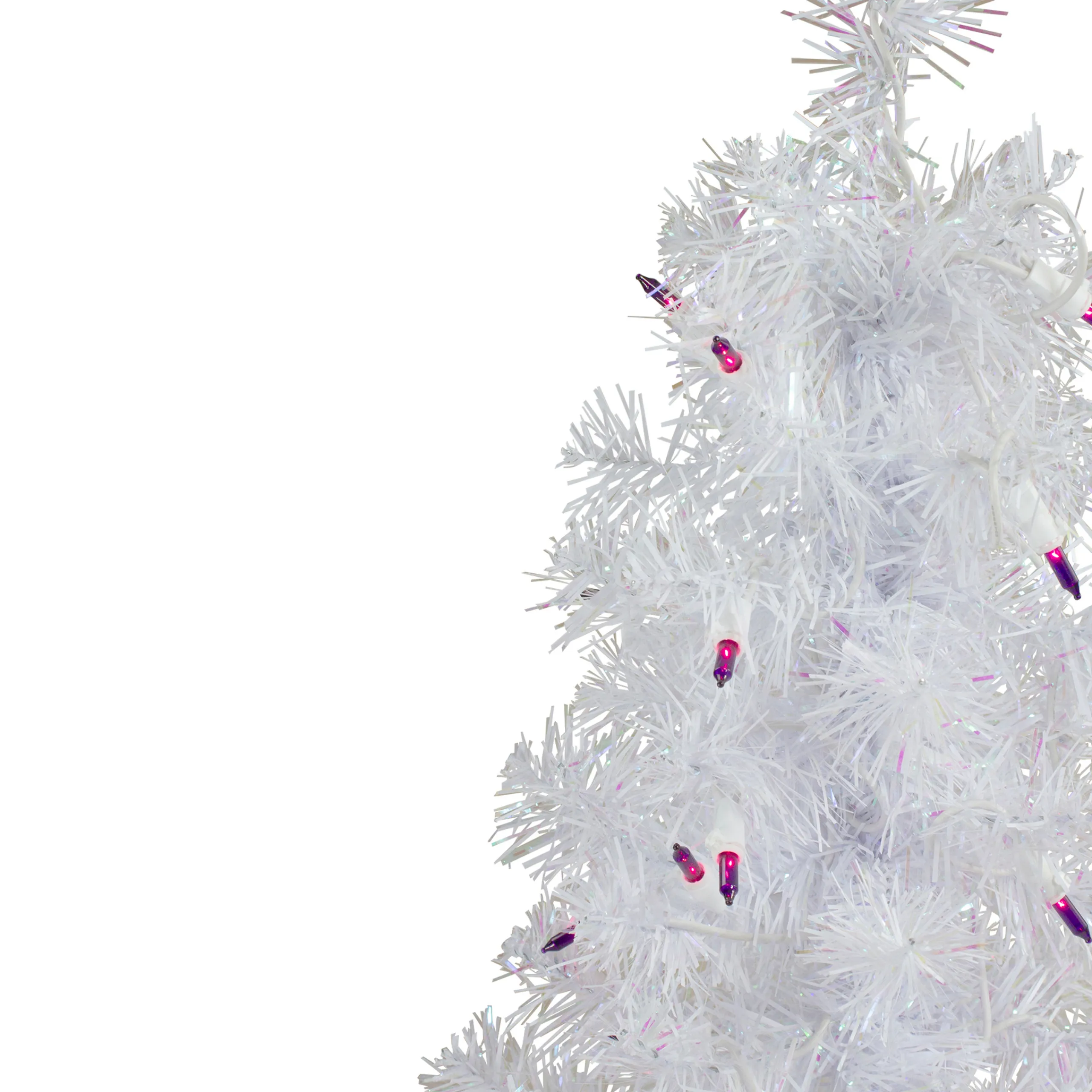 Northlight 2.5 Feet Tall And Smaller>2′ Pre-Lit White Iridescent Pine Artificial Christmas Tree – Purple Lights