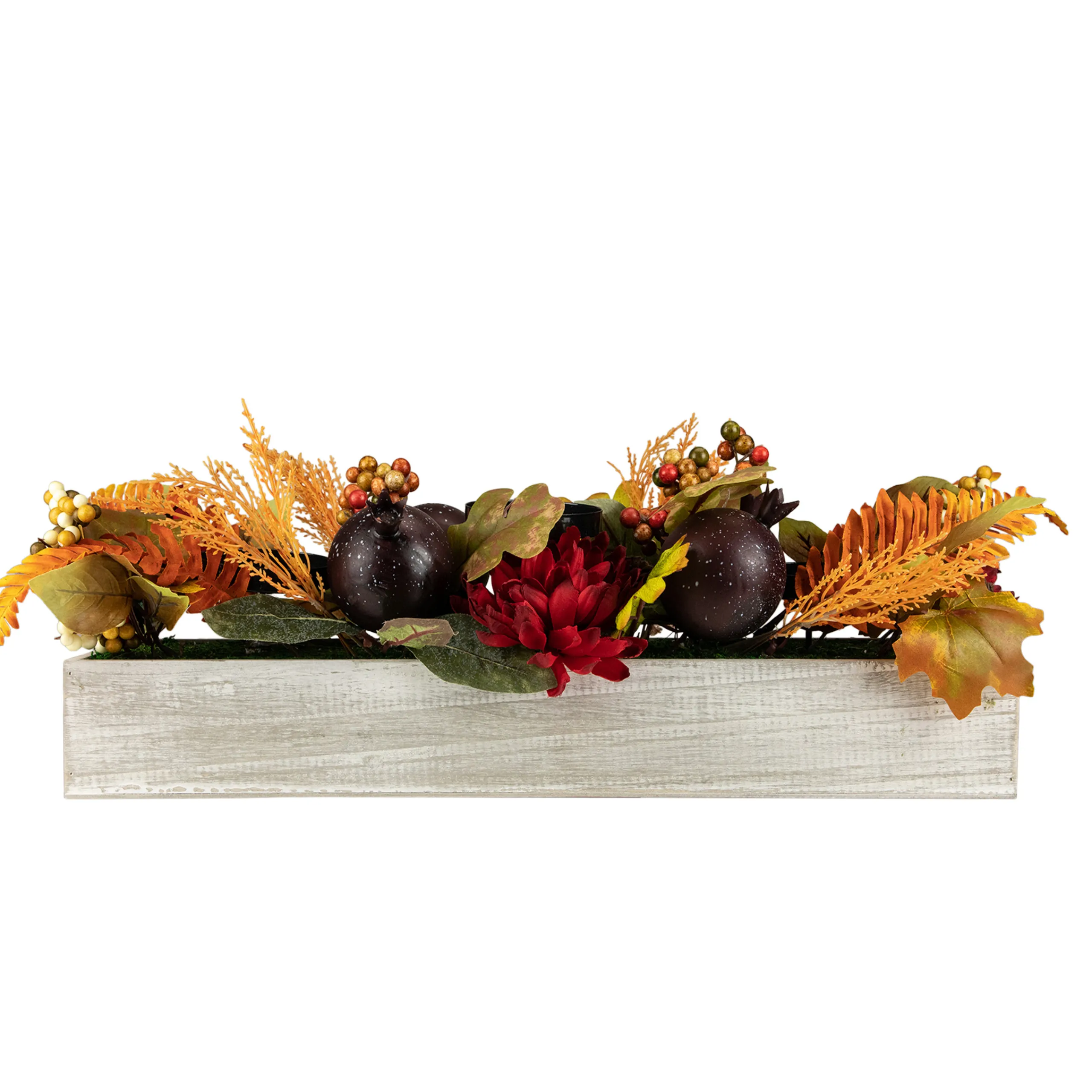 Autumn Harvest Floral Wooden Box Thanksgiving Candle Holder Centerpiece