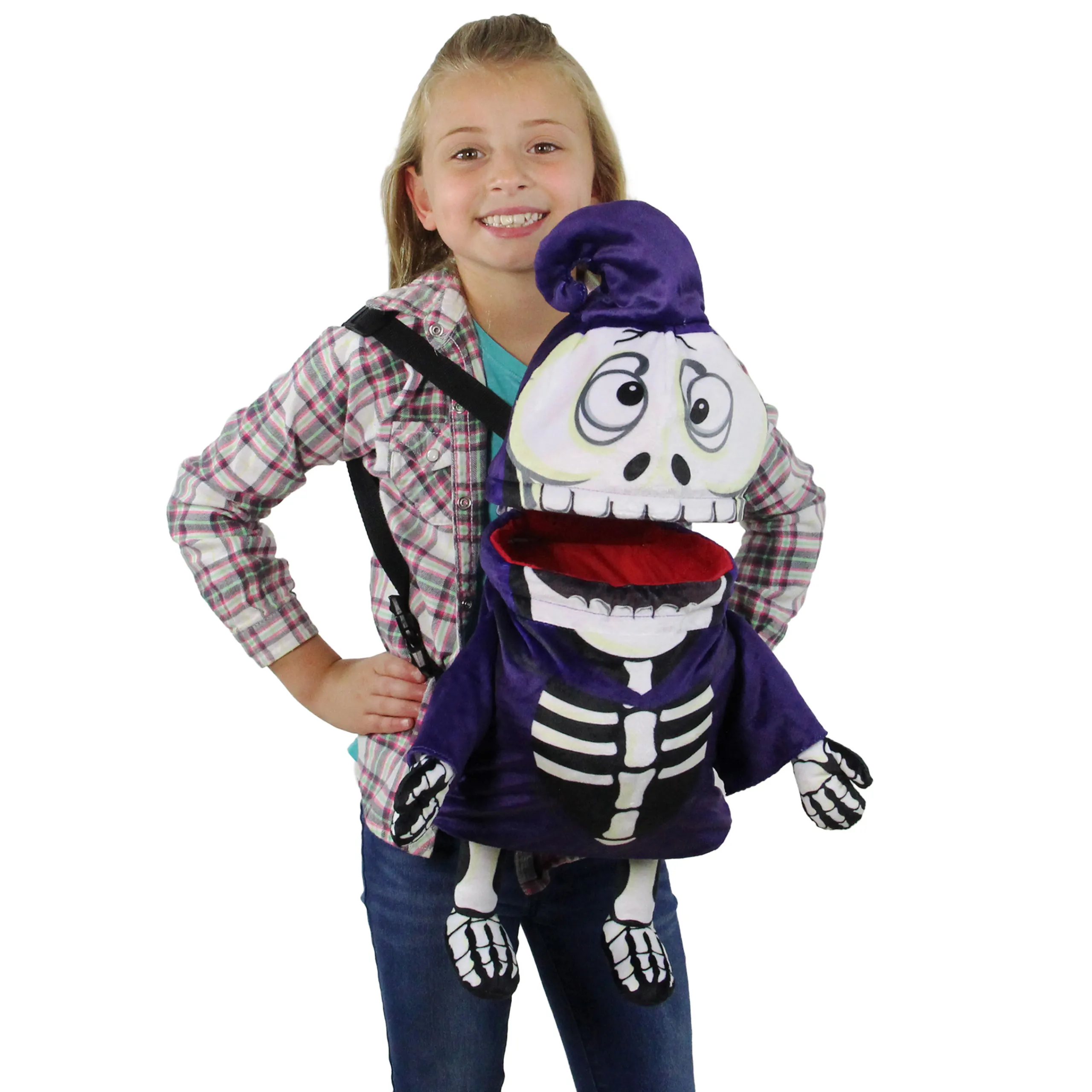Trick-Or-Treat In Style This Year With Our Ultra-Cool Animated Halloween Candy Bag! The Unique Design Allows The Skeleton’s Mouth To Open And Close So That Your Loot Can Be Gathered And Safely Stored While Trick-Or-Treating. Press The Left Hand And The Bag Will Come To Life, Singing To The Tune Of The Hit Song “I Want Candy”. The Bag Can Also Be Worn As A Backpack, And Is The Perfect Halloween Accessory To Complete Your Child’s Skeleton Costume!