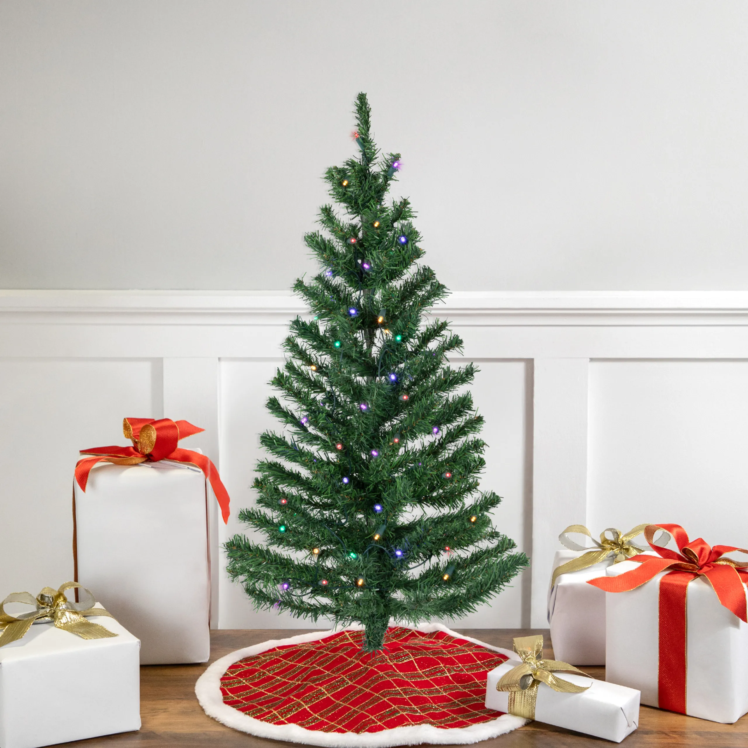 Northlight 3 And 3.5 Feet Tall>3′ Pre-Lit Medium Mixed Classic Pine Artificial Christmas Tree, Multicolor Led Lights