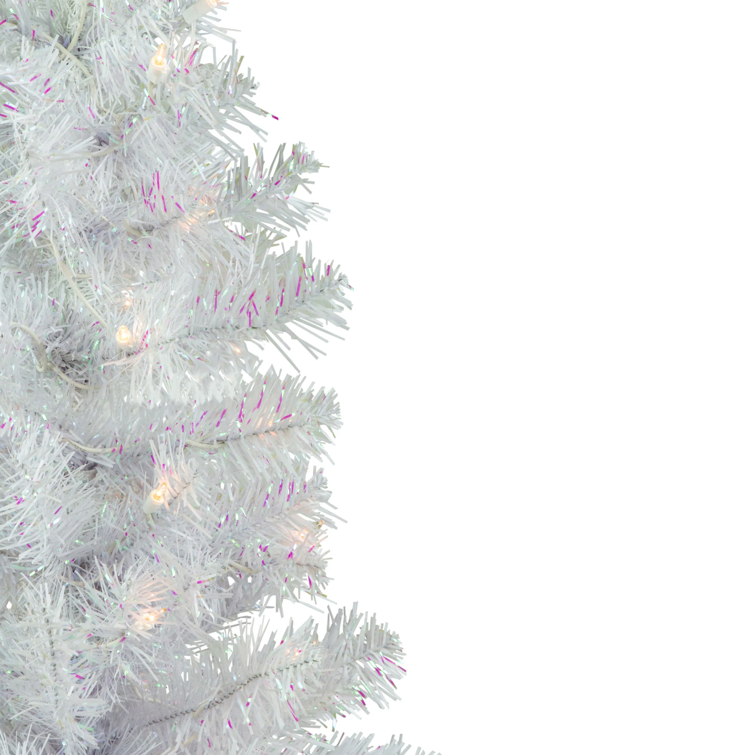With Its Immaculate Color And Generous Profile, The Rockport White Pine Christmas Tree Glistens With Wintry Beauty. It Is A Designer-Inspired Alternative To A Traditional Green Tree With Its Dazzling White Pine Needles. The Branches Contain A Mix Of Matte White And Clear Iridescent Needles That Create Texture And Add Depth To The Tree. The Iridescent Needles Beautifully Reflect The Soft Glow From The Clear Incandescent Mini Lights. This Tree Is Perfect For A Quick And Easy Setup And Ideal For Corners Or Tabletops.