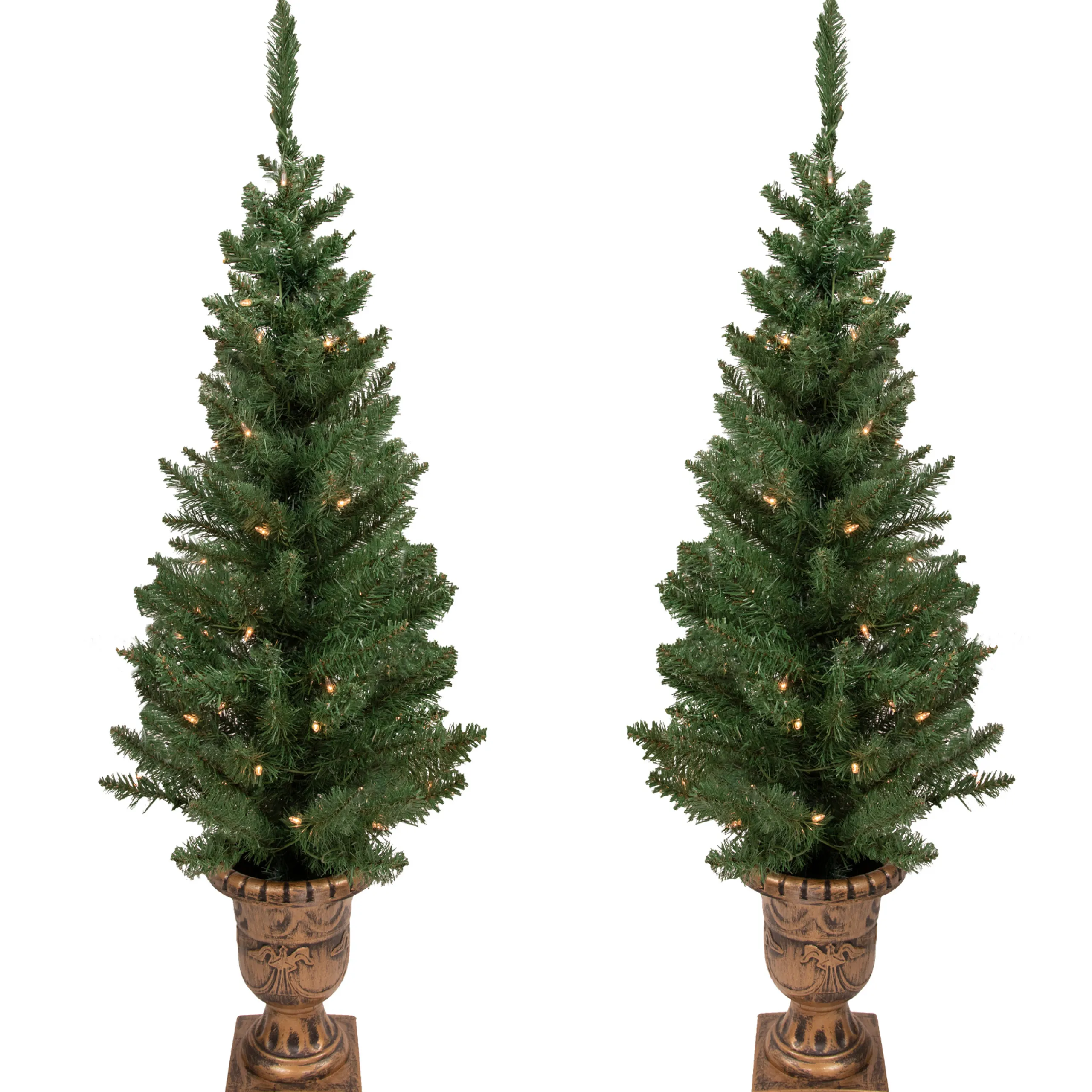 Northlight 4 And 4.5 Feet Tall>Set Of 2 Pre-Lit Potted Porch Pine Topiary Slim Artificial Christmas Trees 4′ – Clear Lights