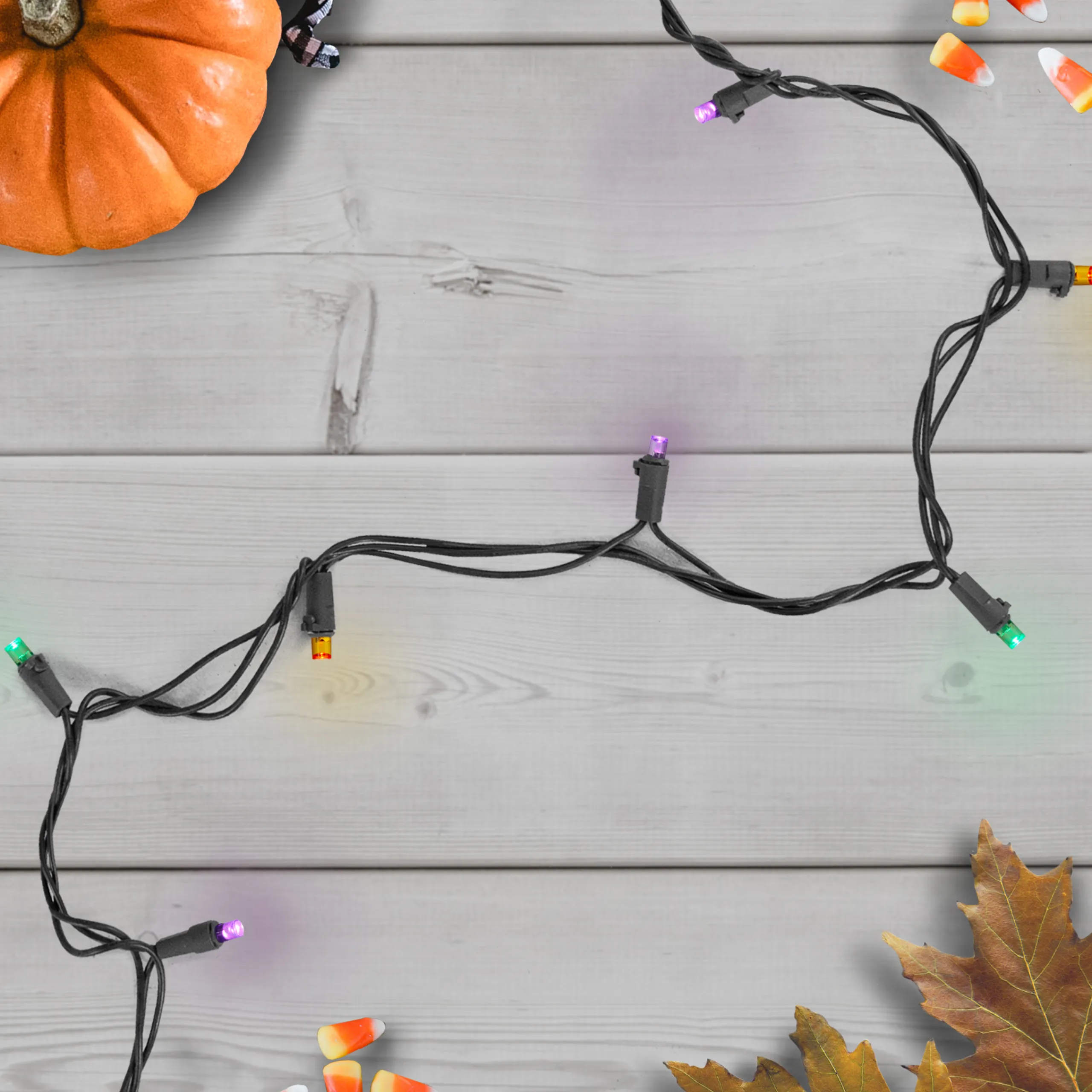 Northlight 50 Count Purple, Green And Orange Led Christmas Lights, 16 Ft Black Wire