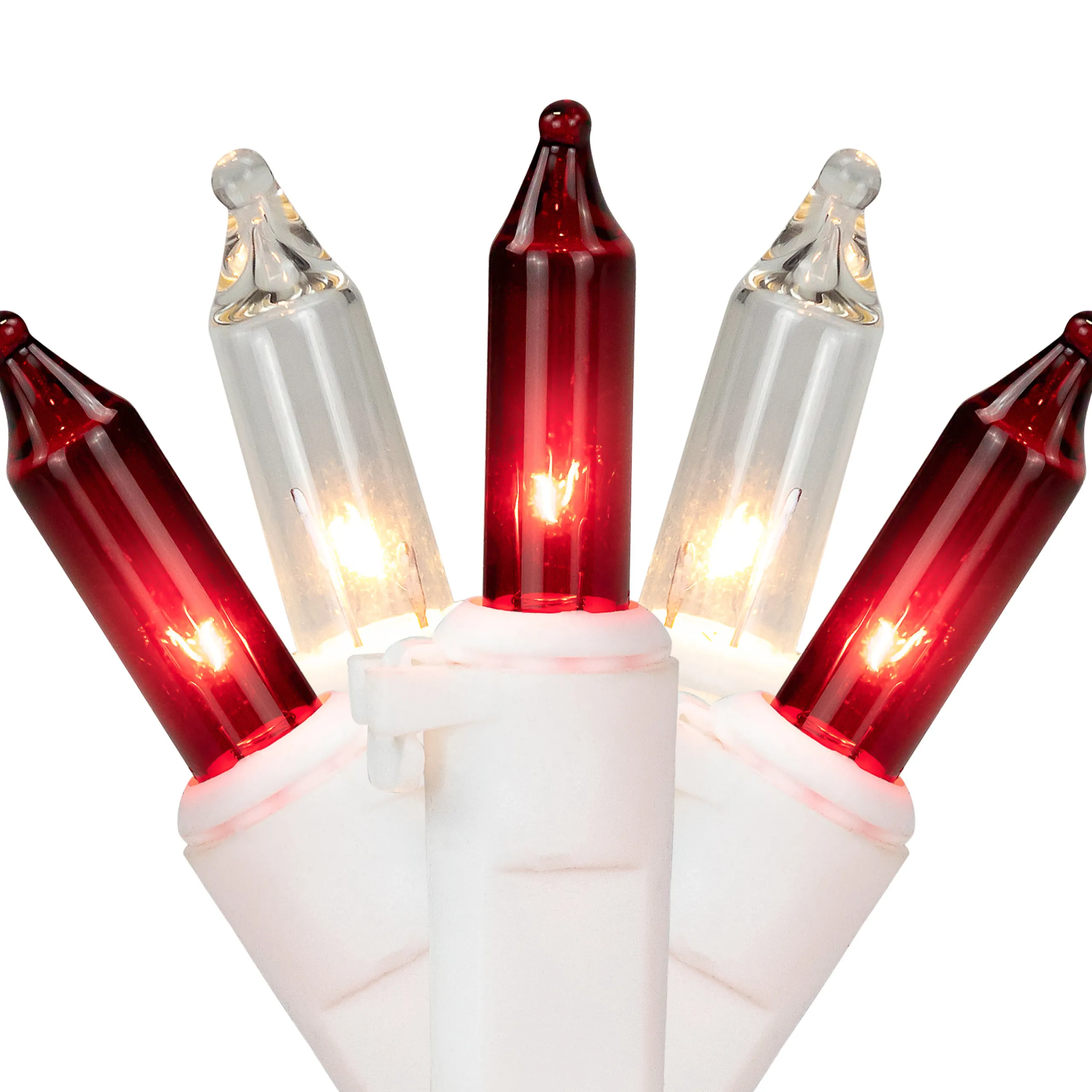 Northlight 50 Count Red And Clear Mini Christmas Light Set, 10Ft White Wire