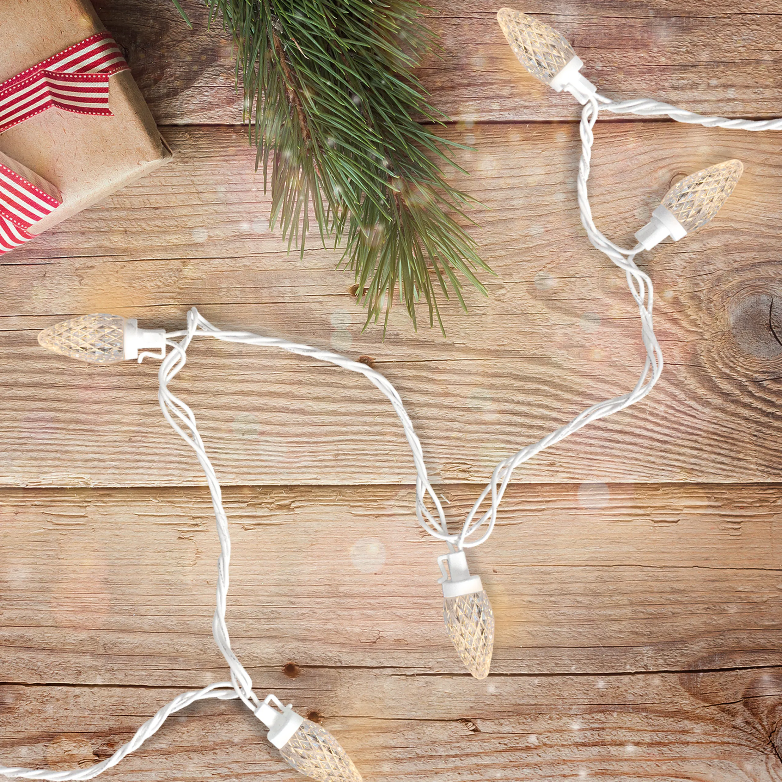 Northlight 50 Count Warm White Led C7 Faceted Christmas Lights, 20.25 Ft White Wire