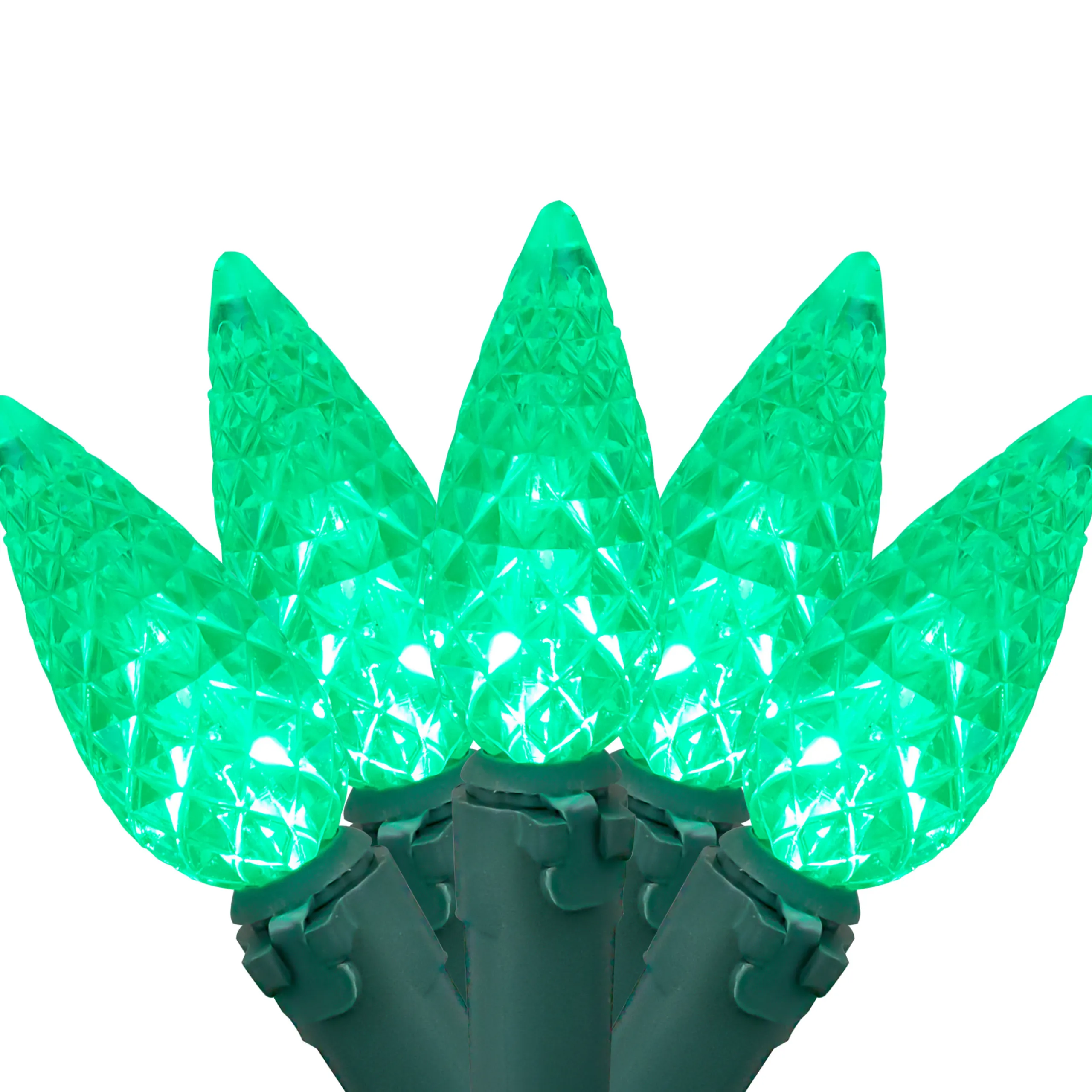 Northlight 70-Count Green Faceted C6 Led Christmas Light Set – 23Ft Green Wire