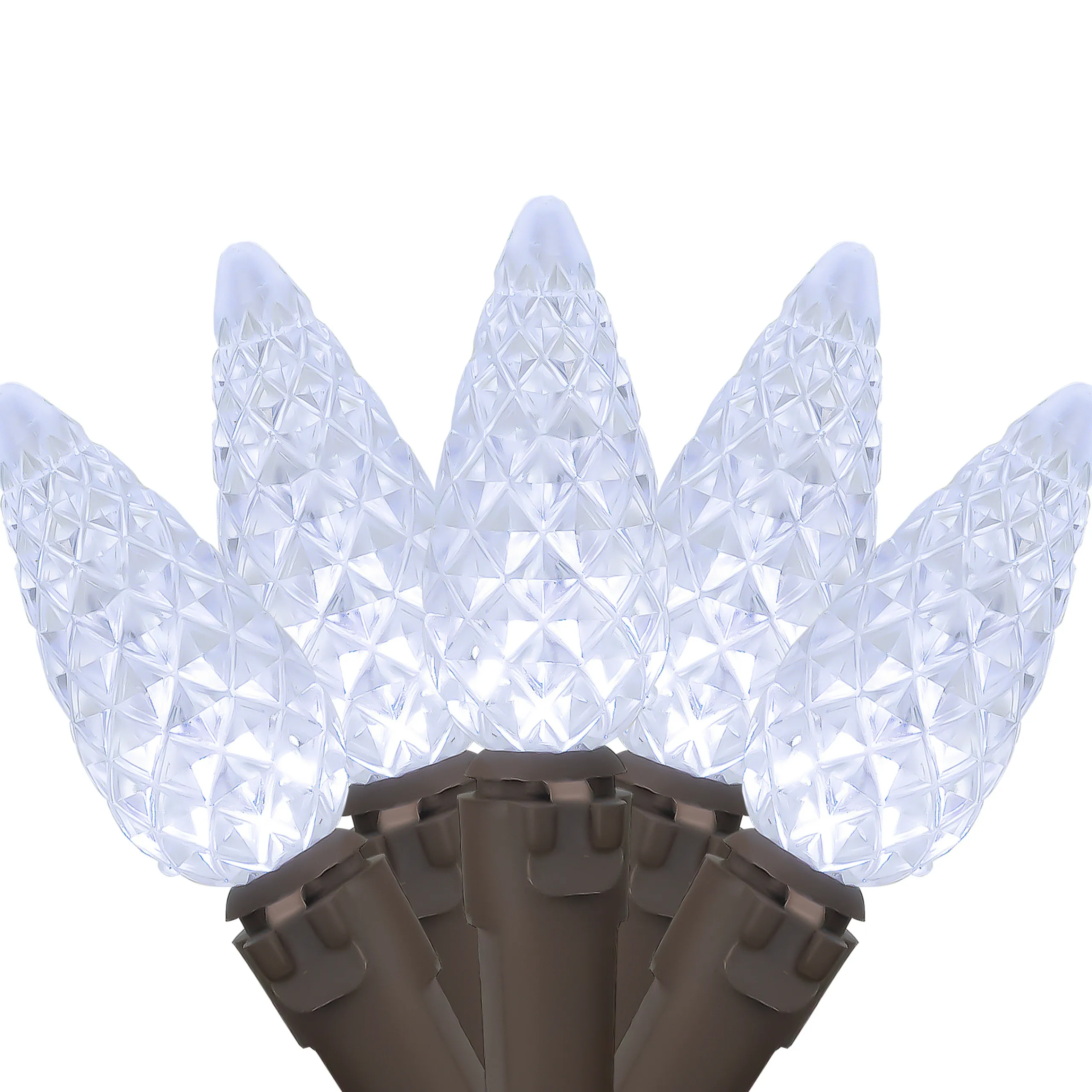 Color: Pure White Faceted Bulbs / Brown Wire