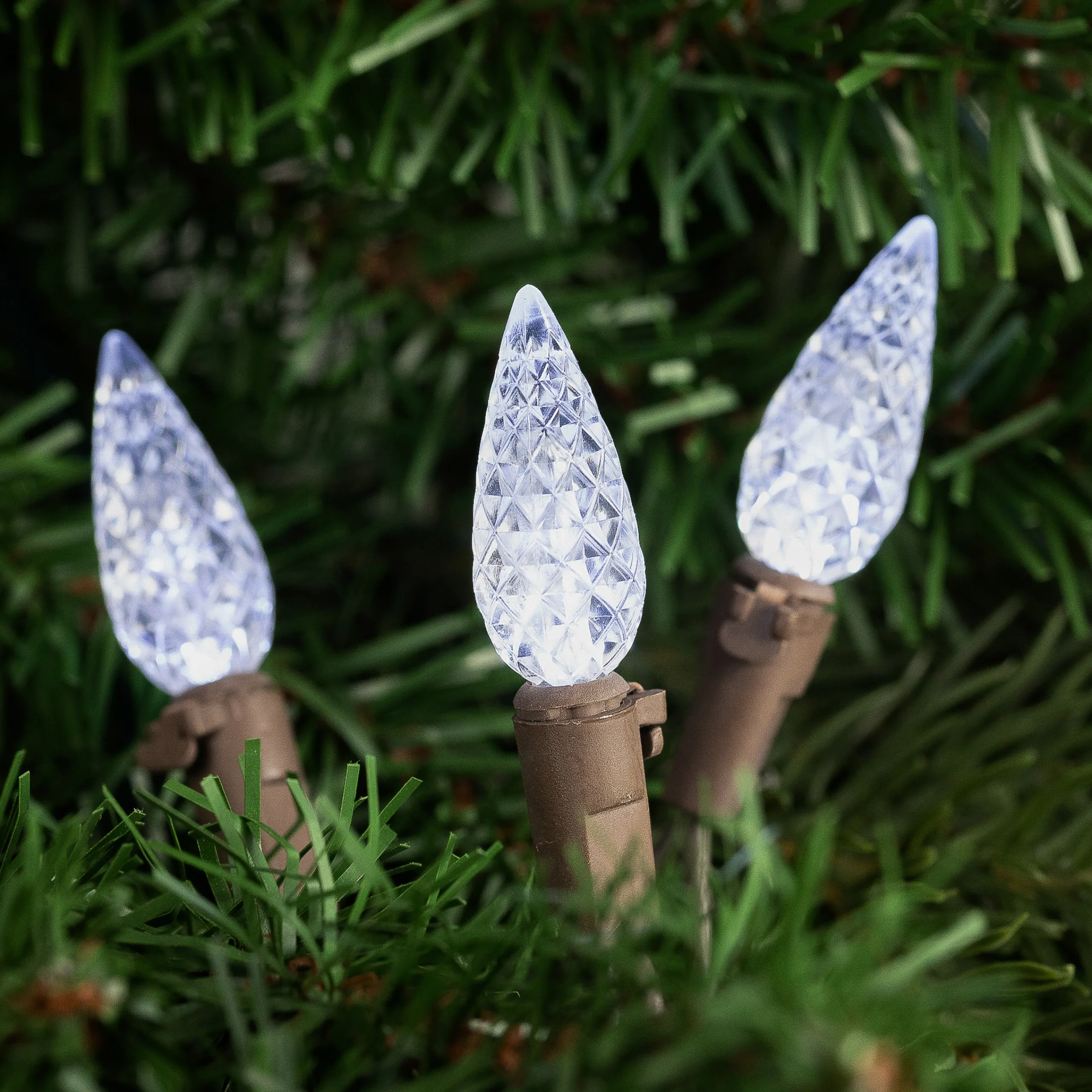 Northlight 70-Count Pure White Led Faceted C6 Christmas String Lights, 23Ft Brown Wire