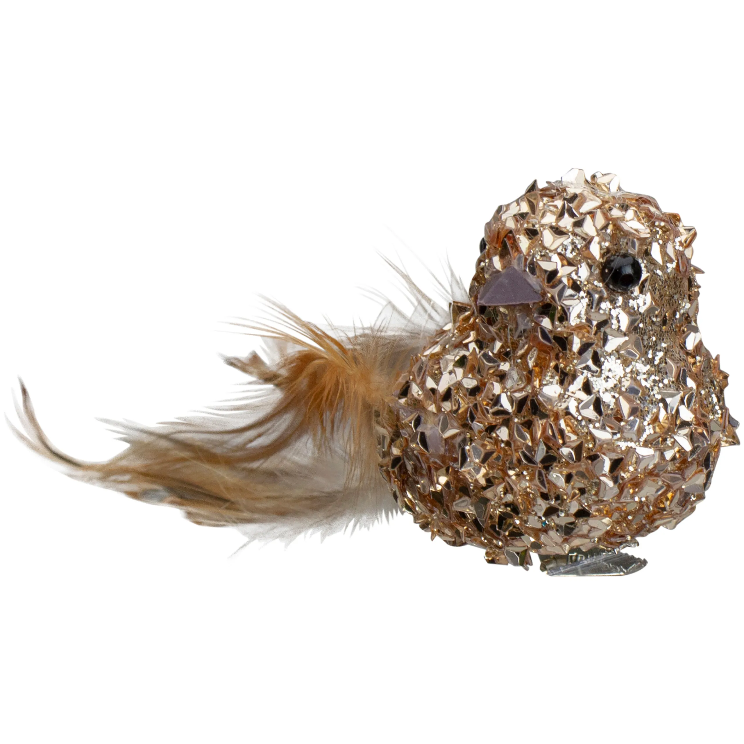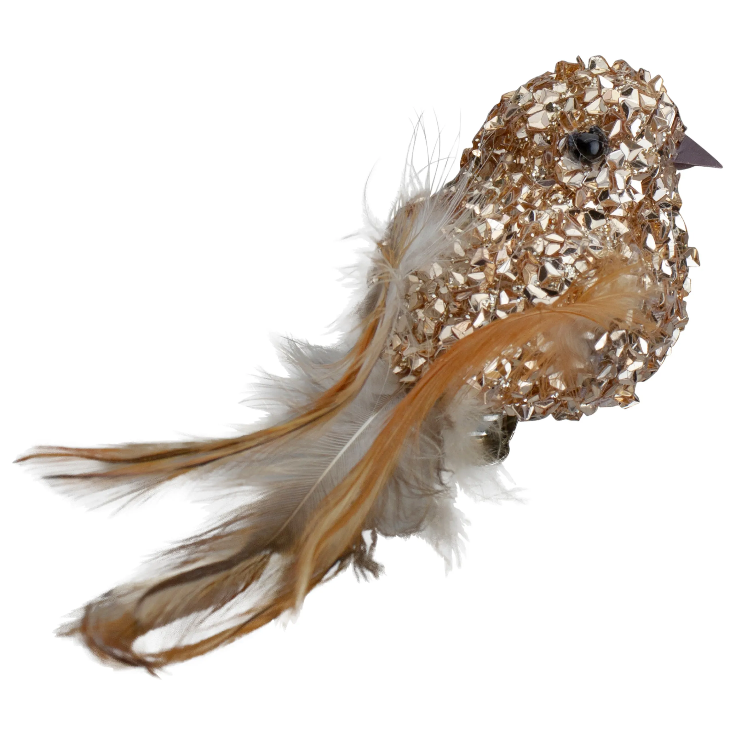 Northlight Animals>5.5″ Left Facing Champagne Gold Beaded Clip On Bird Christmas Ornament