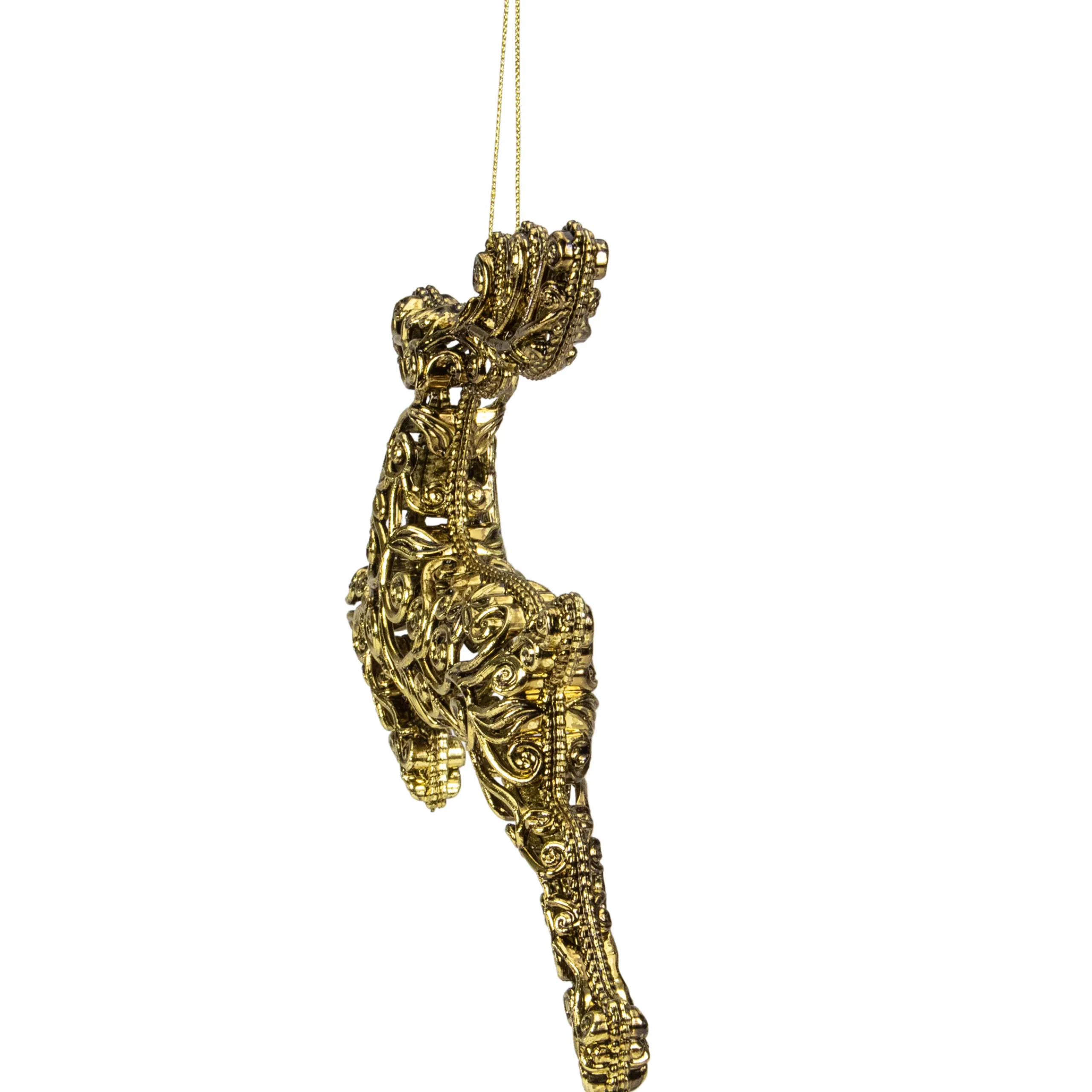 This Intricate Gold Leaping Reindeer Christmas Ornament Is A Beautiful Addition To Your Tree This Year. The Enchanting Design Will Stand Out And Create The Perfect Ambiance For Your Special Holiday Season.